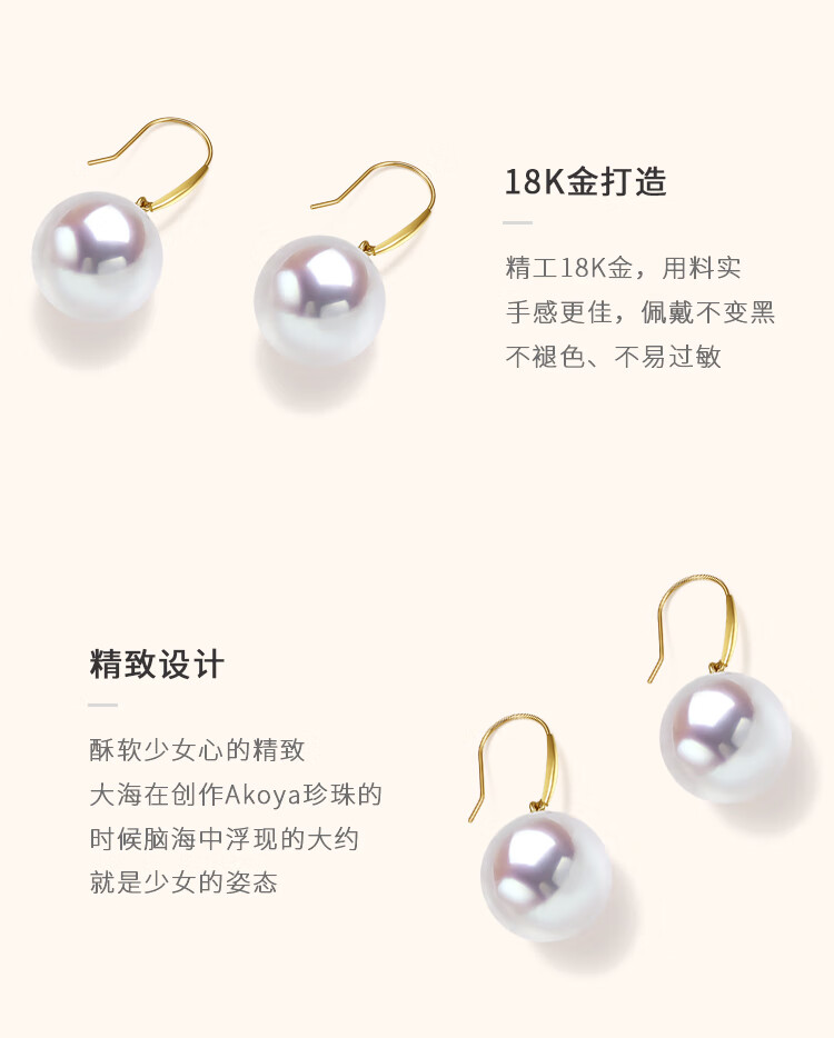 Queen of Pearls 18K Gold AKOYA Seawater Pearl Earrings Perfect Round Strong Luster Pearl Earrings Birthday Gift for Women