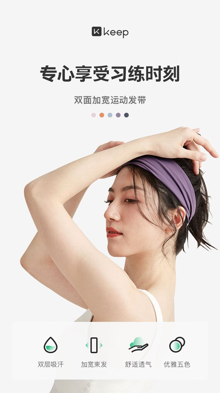 Keep sports wide headband yoga dance sports fitness sweat-absorbent breathable headband oxygen purple