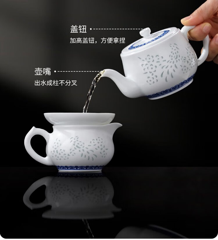Jingdezhen (jdz) ceramic tea set Chinese style intangible cultural heritage blue and white exquisite Kung Fu tea set high-end housewarming gift for home use