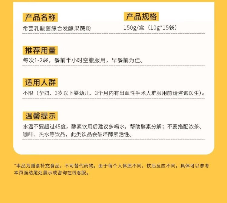 Xiyun Enzyme Lactic Acid Bacteria Comprehensive Fermentation Fruit and Vegetable Powder 10g*15 bags/box Hi Eat Enzyme Probiotic Fruit and Vegetable Enzyme