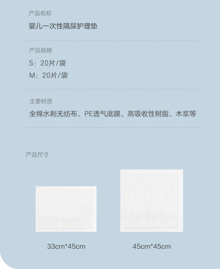 All-cotton era disposable urine-proof baby diaper-proof pad for adults and the elderly nursing pad 33*45cm 20 pieces/pack