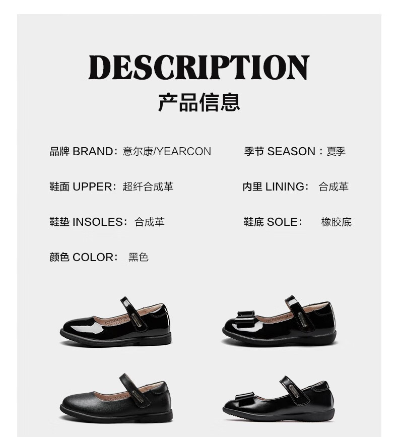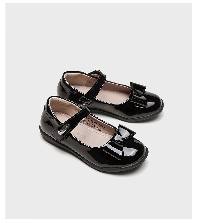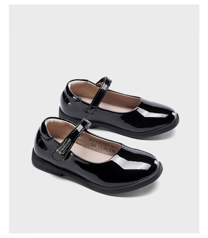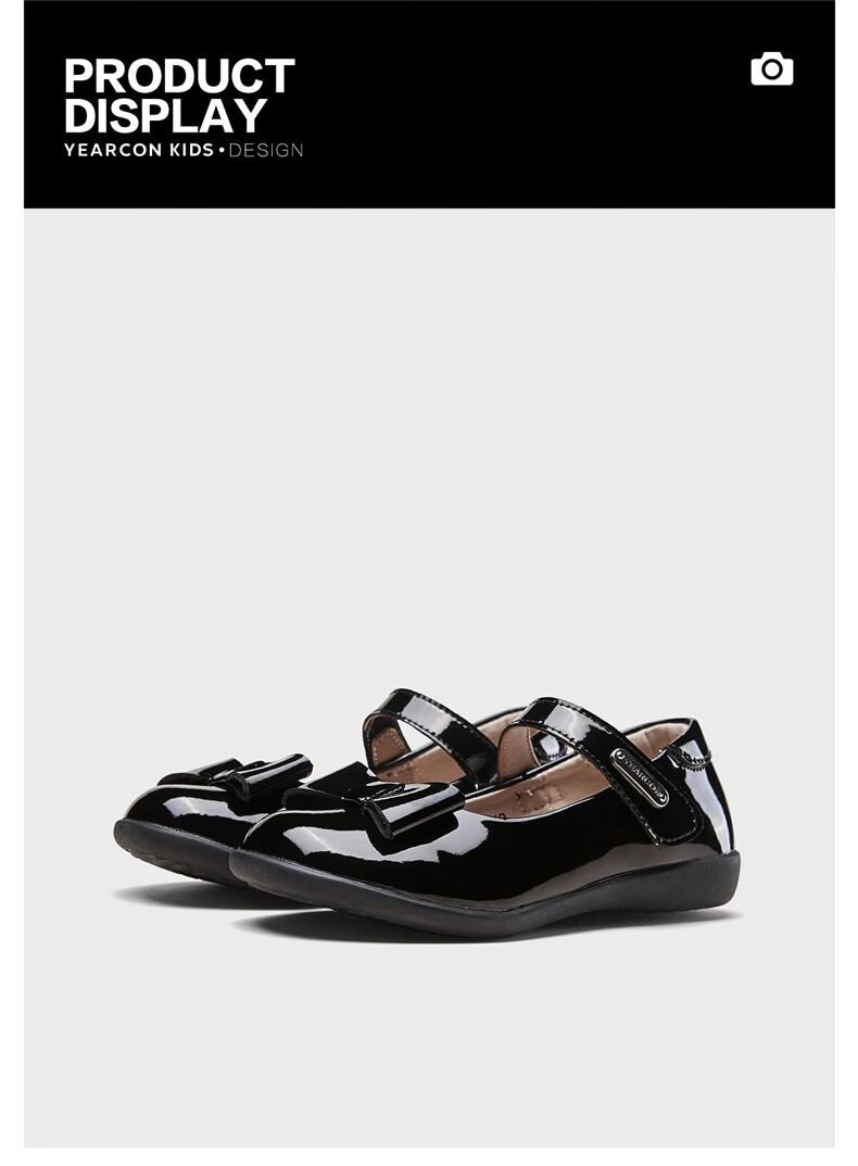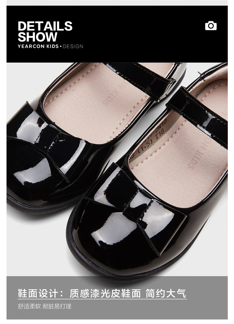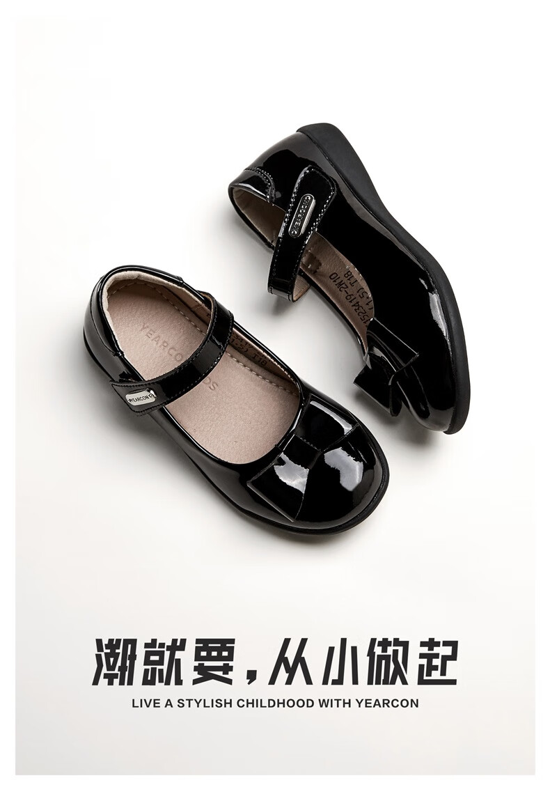Yierkan girls' leather shoes, essential children's leather shoes for school, princess shoes, black leather shoes, non-slip leather shoes, performance shoes, black 36