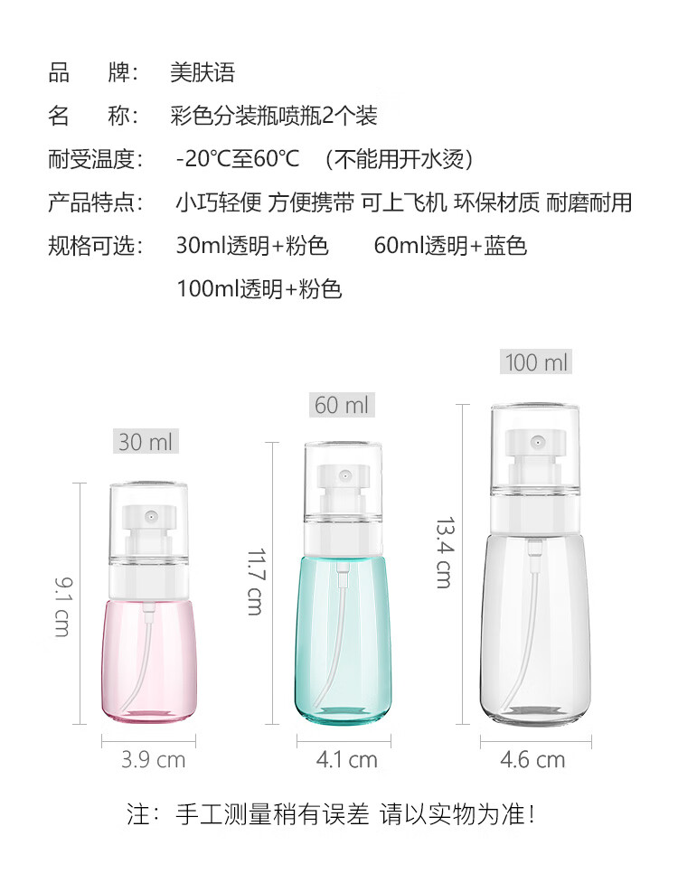 Beauty language ultra-fine mist bottle spray bottle 60ml*2 spray bottles press makeup bottle alcohol spray bottle empty bottle MF8946