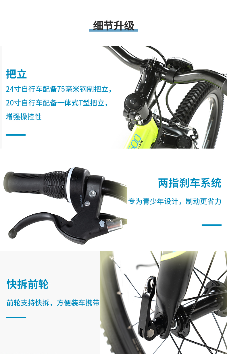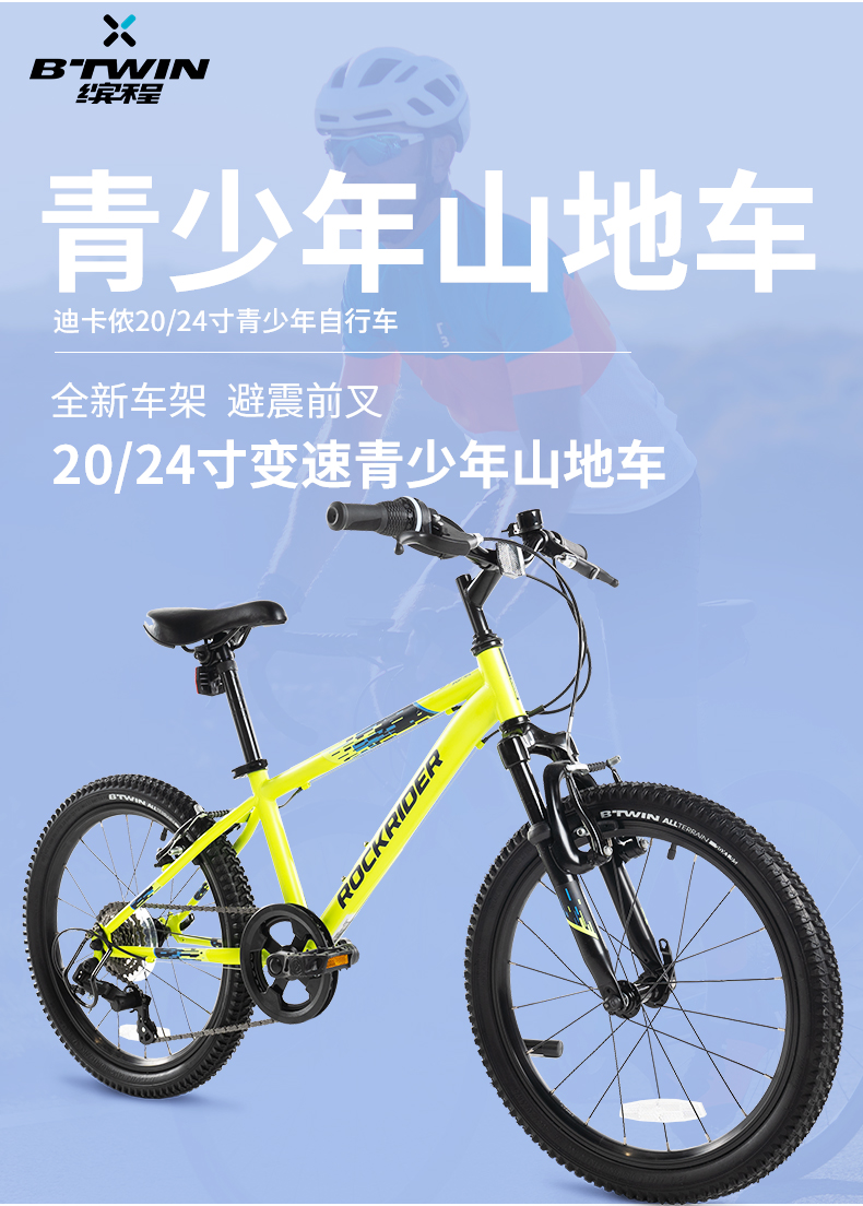 Decathlon children's bicycle mountain bike boys and girls bicycle OVBK-24 inch fluorescent lime green-2751252