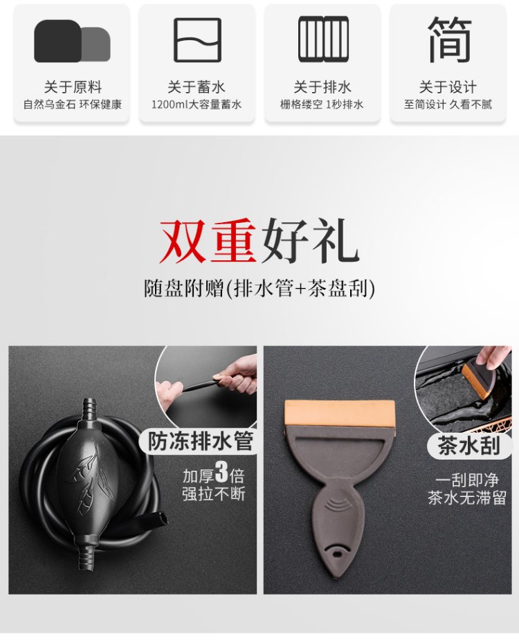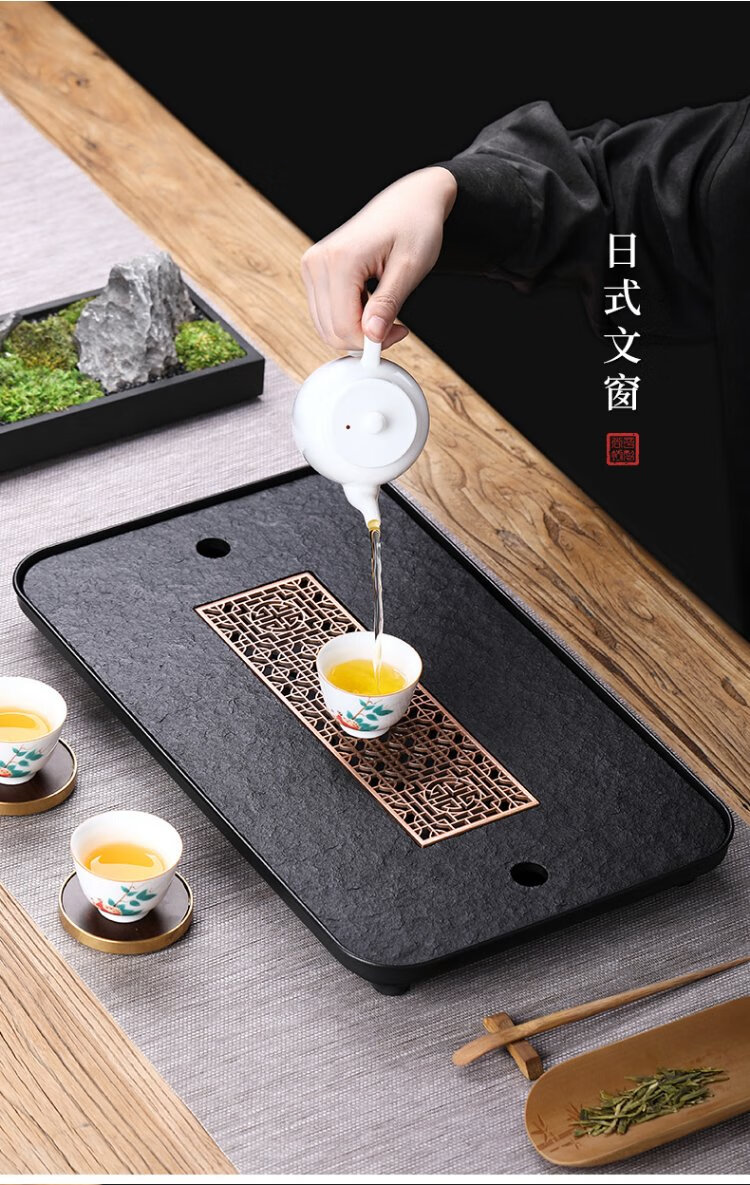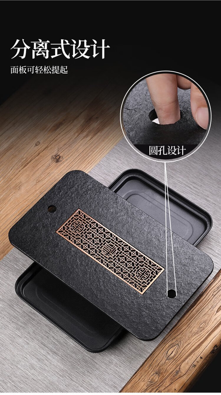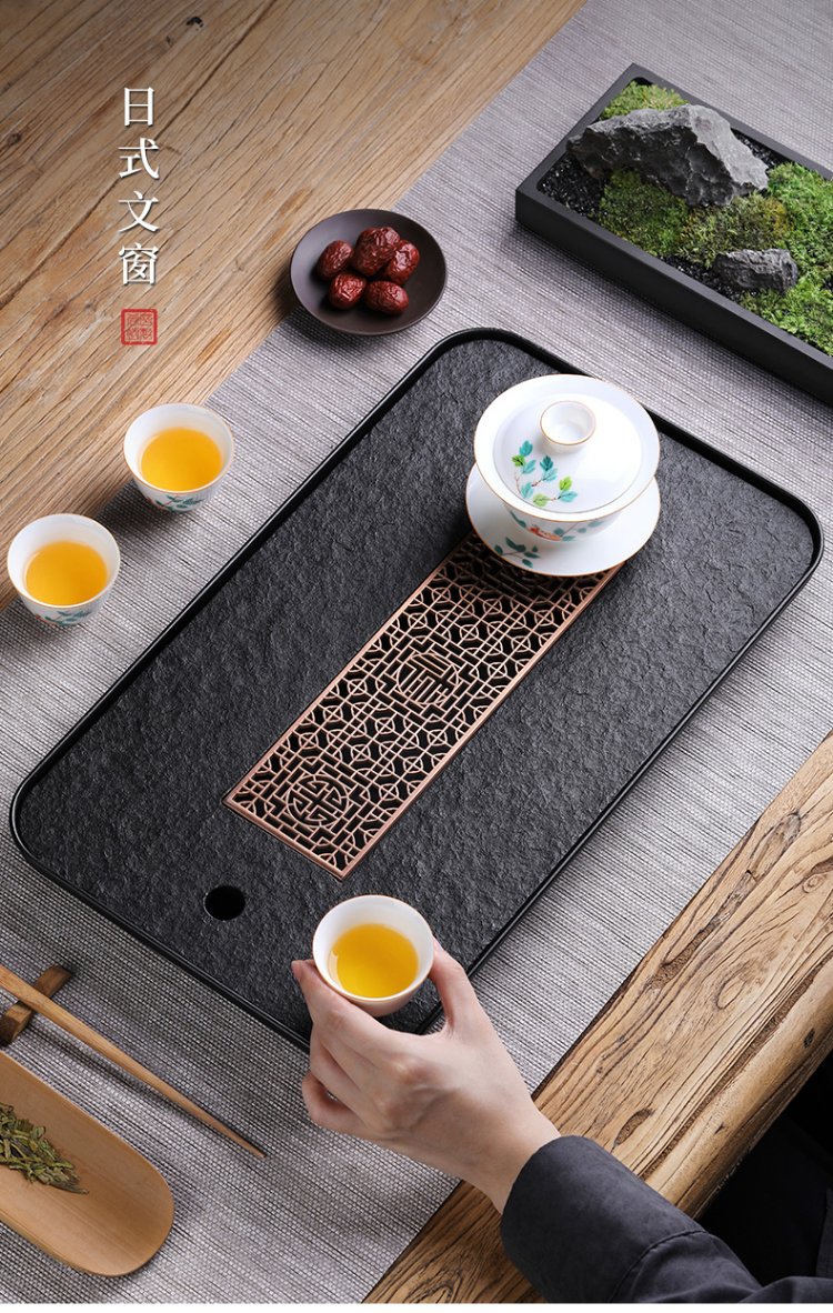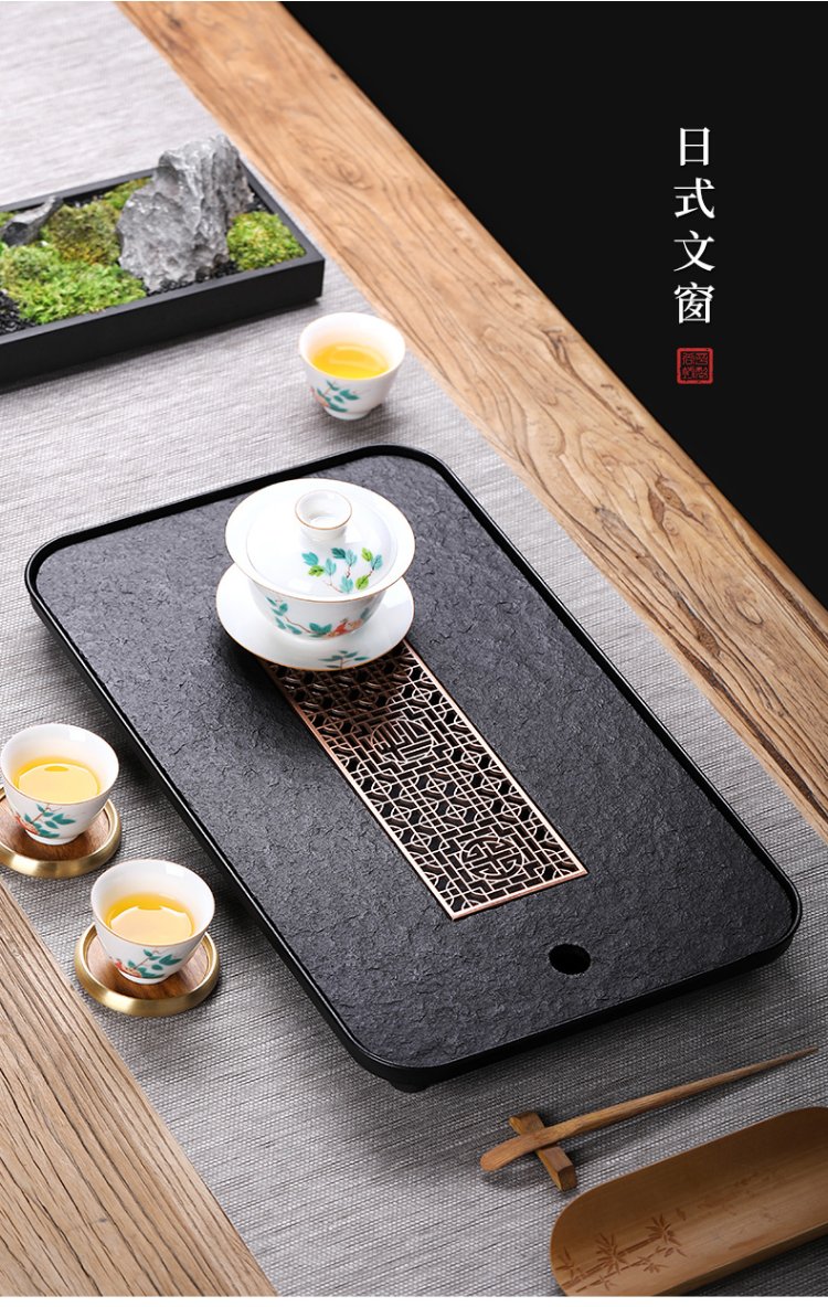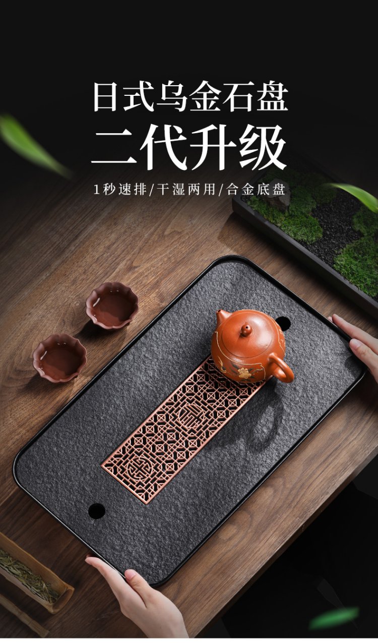 Shangyanfang natural black gold stone tea tray with drainage and water storage small household kung fu tea set simple tea tray dry brewing tea table