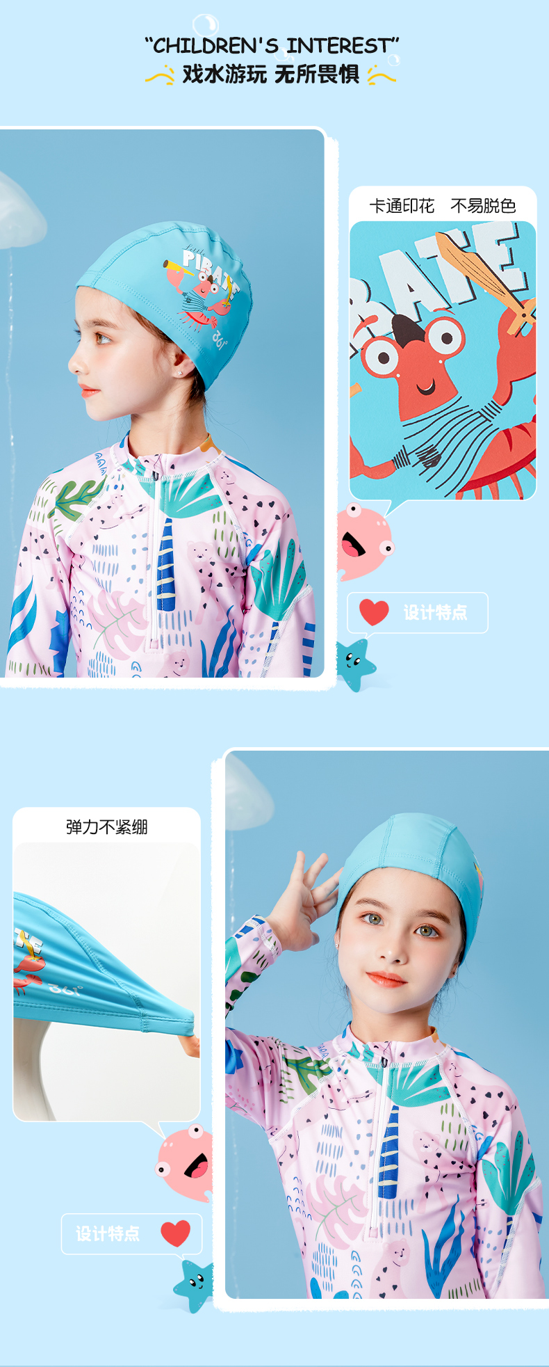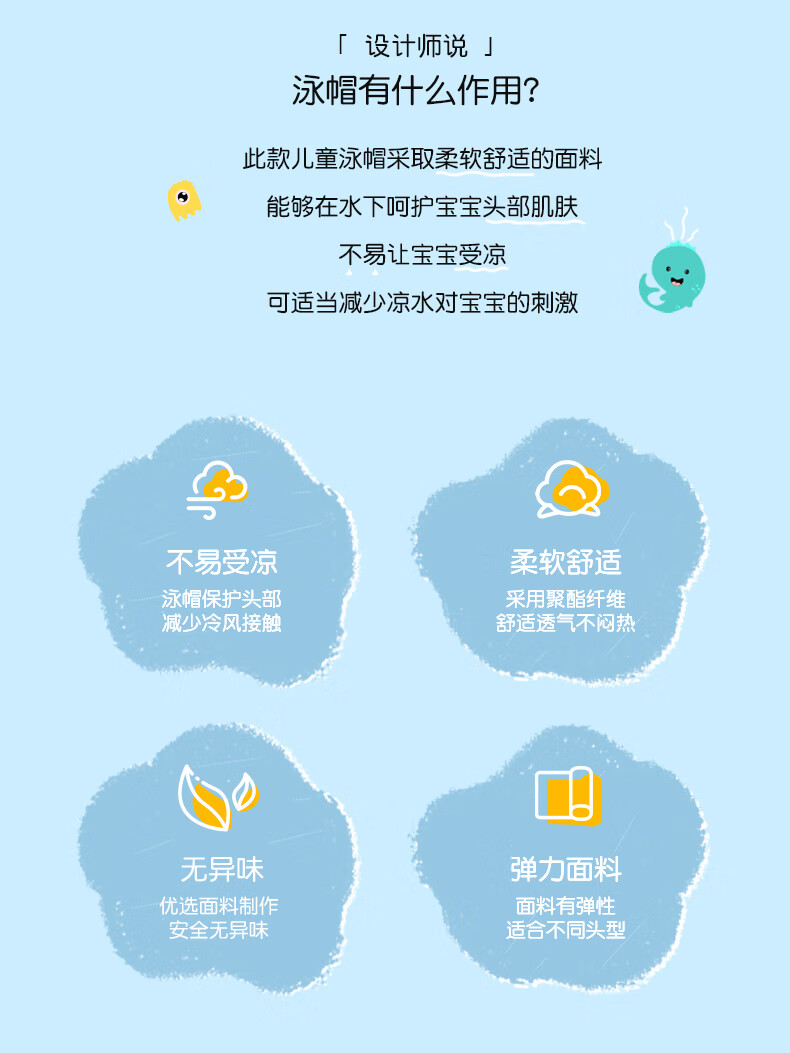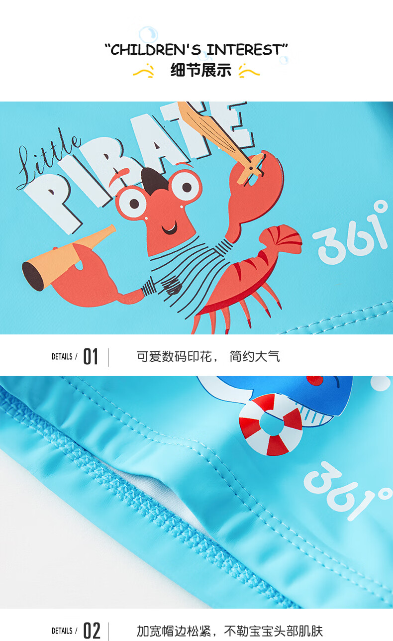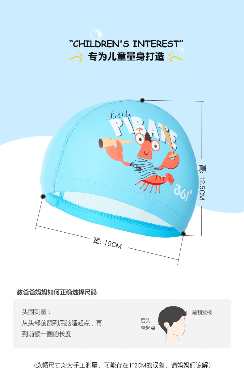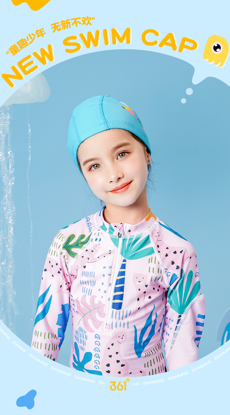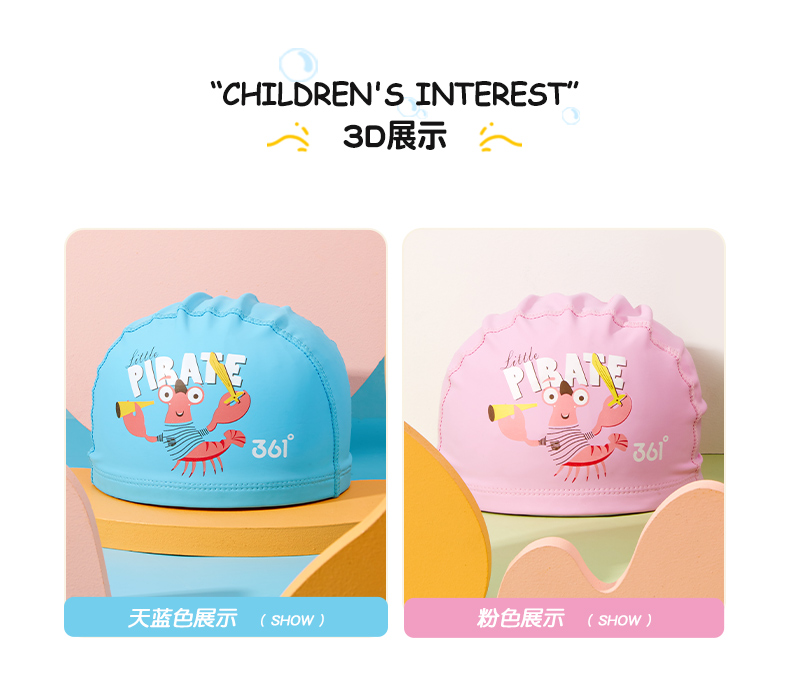 361 Children's Swimming PU Hat Sports Men's and Women's Fashionable Cute Cartoon Waterproof Comfortable Headless Swimming Cap Blue