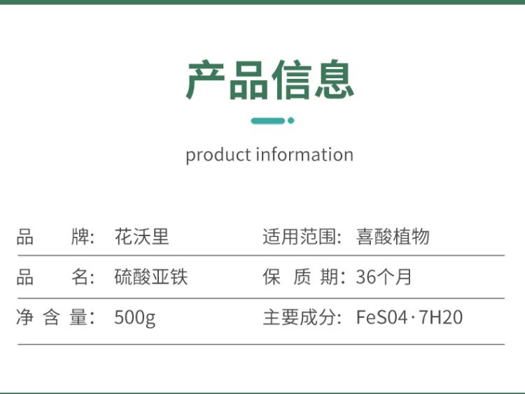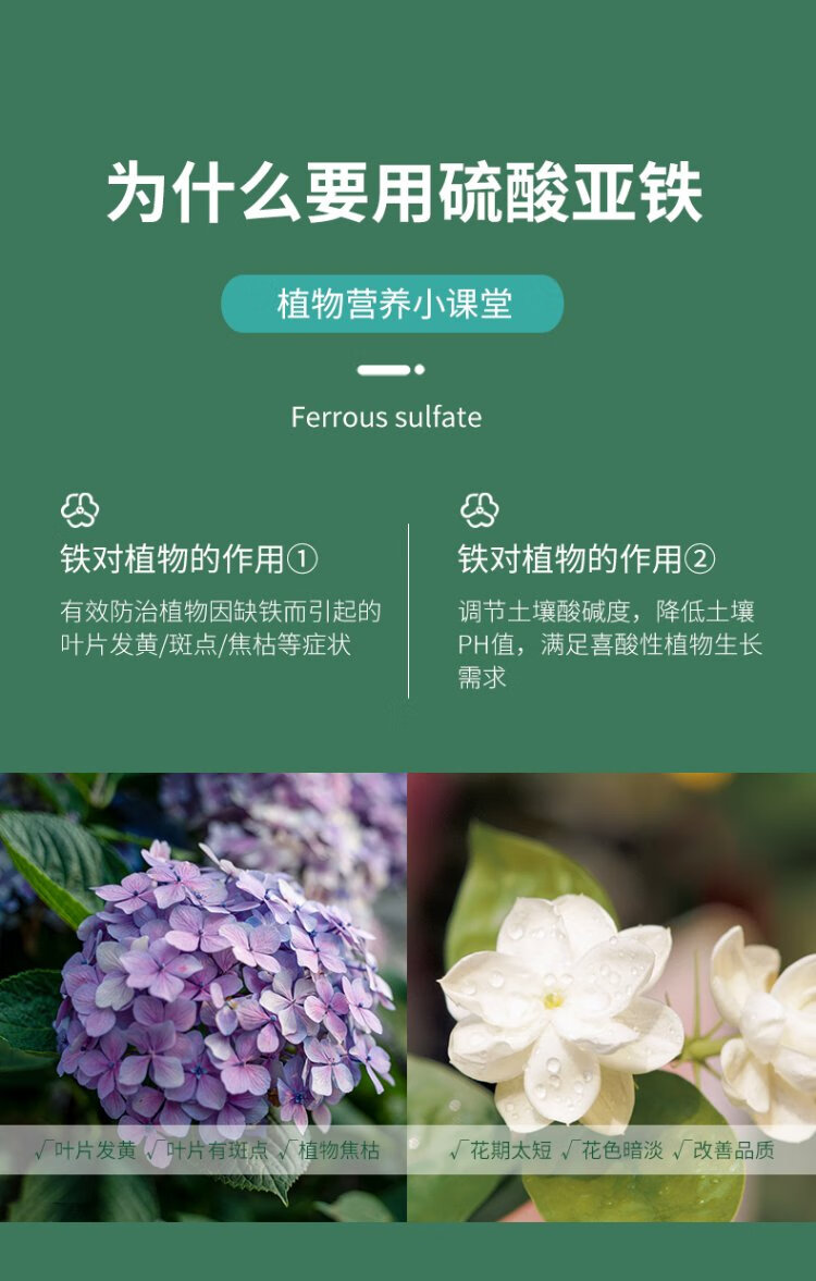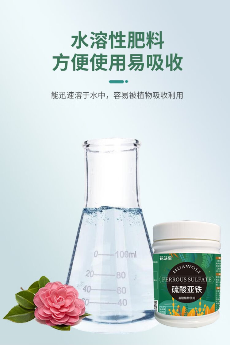 Huawoli Ferrous Sulfate 500g Iron Fertilizer Anti-Yellow Leaf Gardenia Fertilizer Growing Flowers Regulating Soil Acid-base Single Element Fertilizer