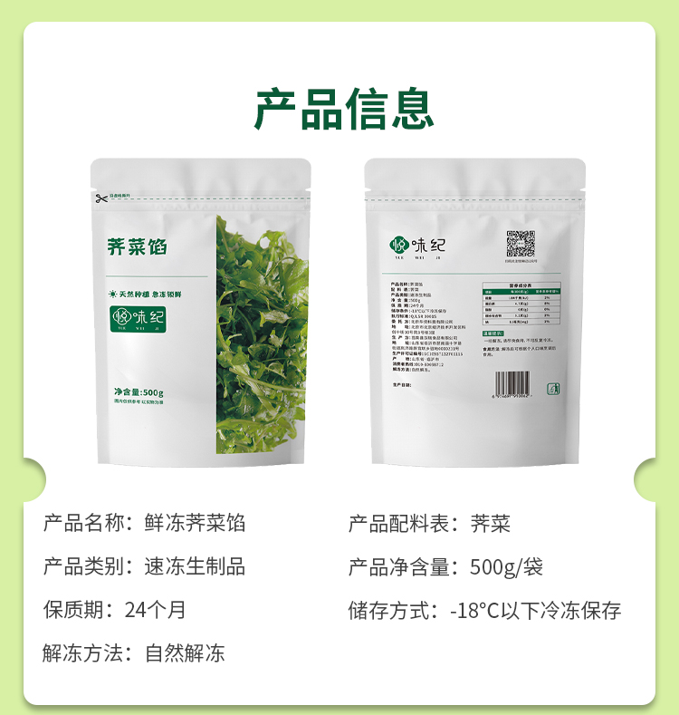 Yueweiji fresh frozen shepherd's purse stuffing 500g steamed stuffed buns and dumplings stuffing frozen vegetable semi-finished instant dishes