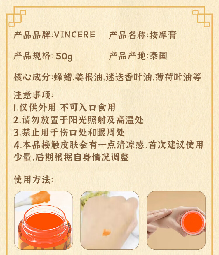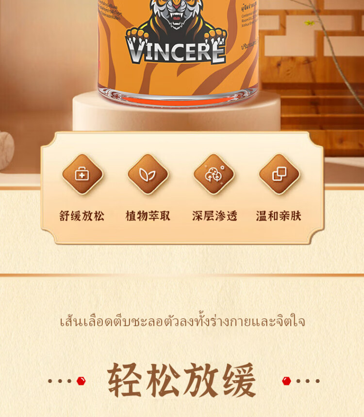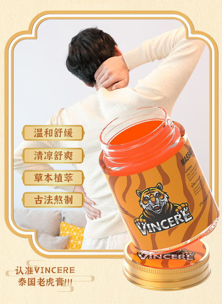 VINCERE Thailand imported tiger cream sports cream shoulder, neck and lumbar spine soothing and relaxing muscle massage cream 50g