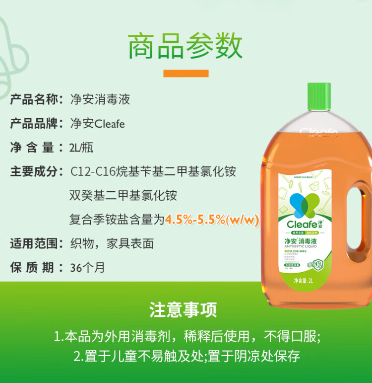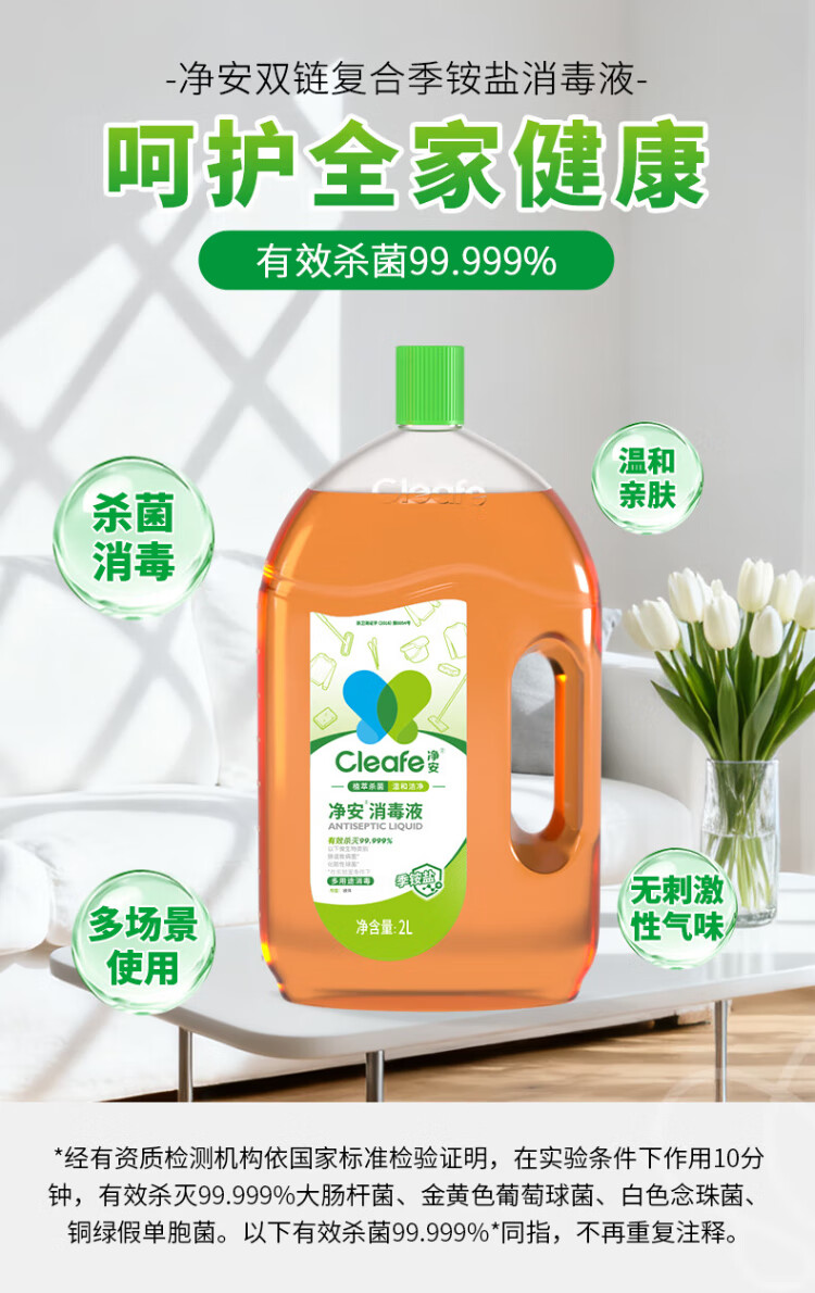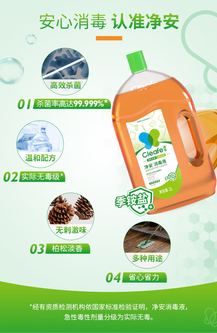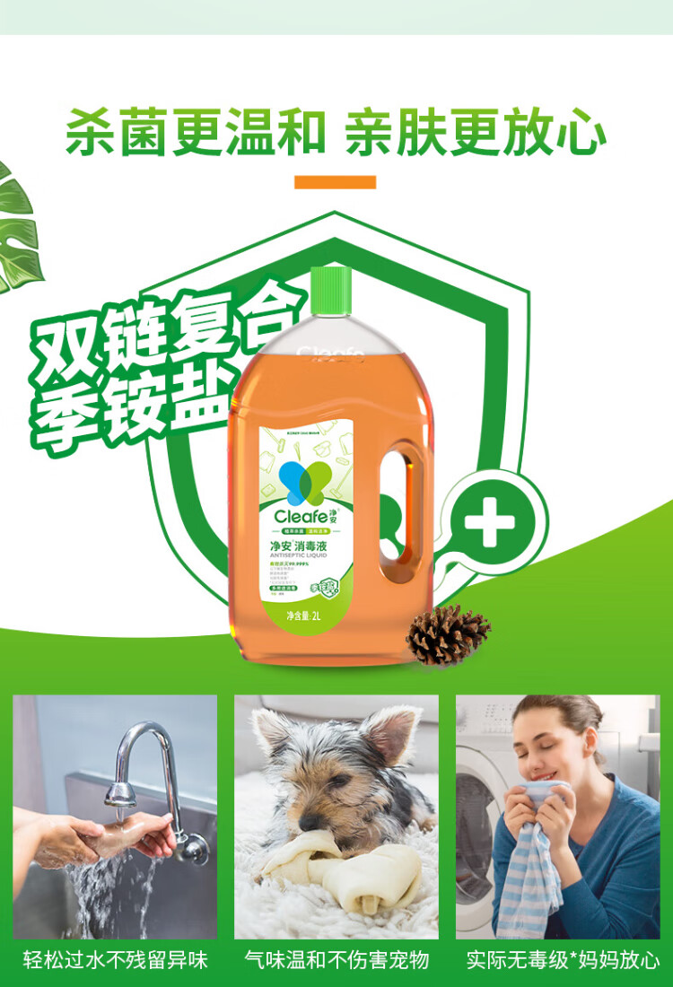 Jing'an quaternary ammonium salt disinfectant household 2L floor toys clothing pets multi-purpose disinfectant water pine wood fragrance is not pungent