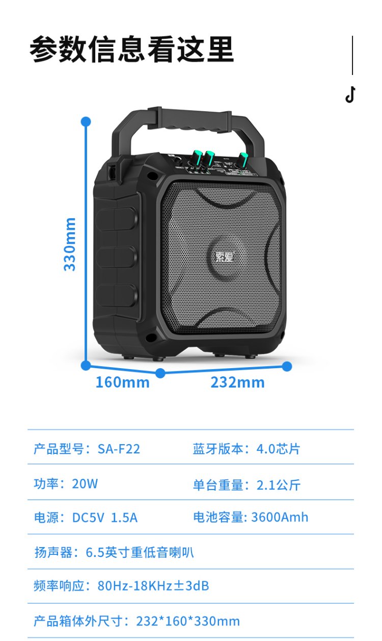 Sony Ericsson (soaiy) SA-F22 outdoor high-volume square dance electric acoustic guitar musical instrument speaker small household portable street stall speaker payment code voice announcer
