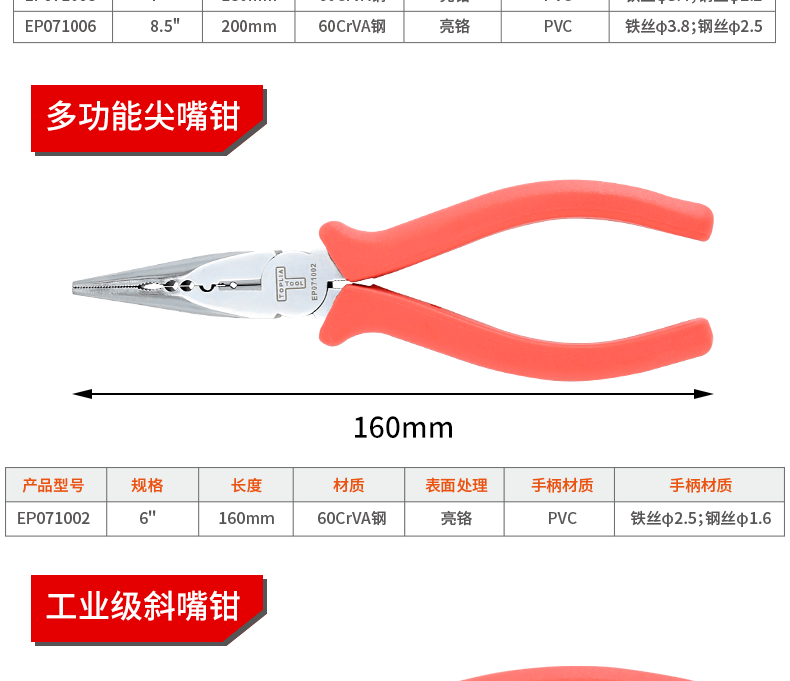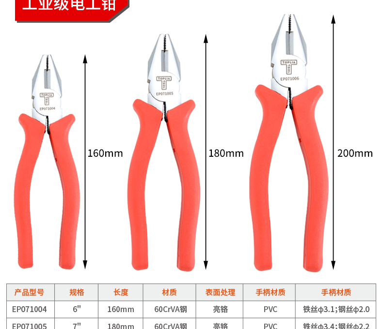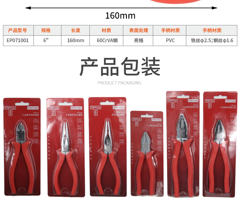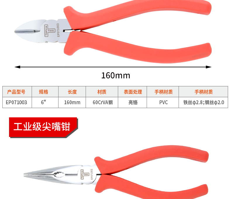 Tolia Industrial Japanese-style diagonal nose pliers diagonal nose pliers electrician diagonal nose pliers 6 inches 160mm EP071003