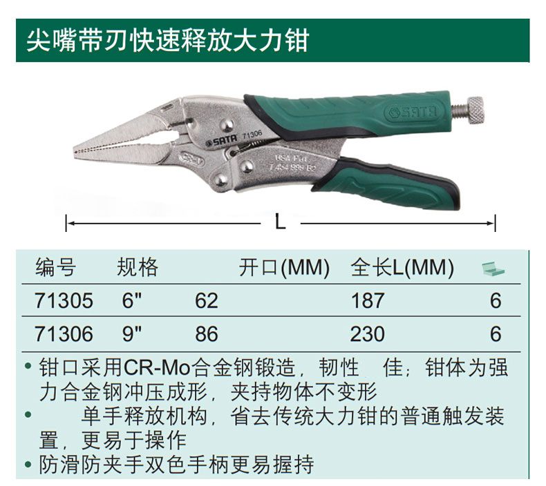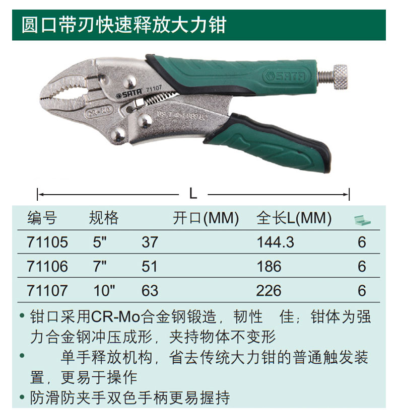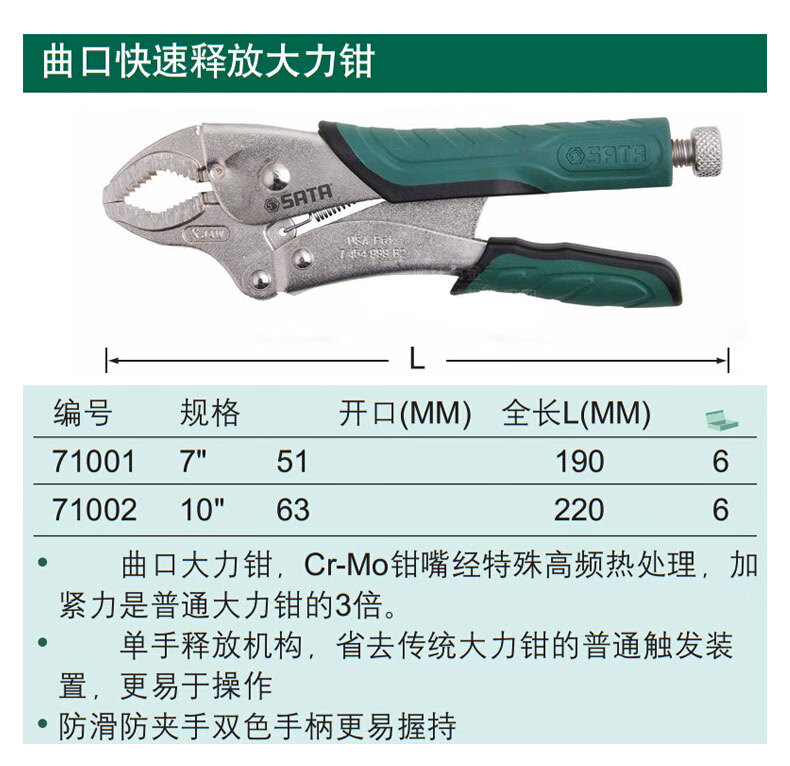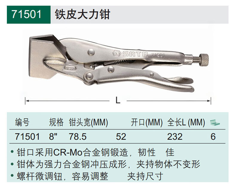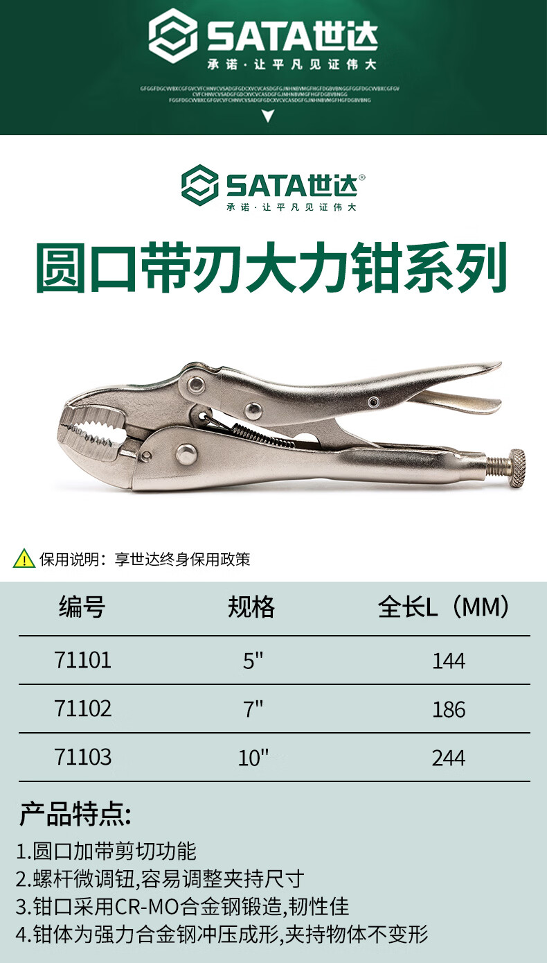 SATA Round Mouth Blade Power Pliers 10 Industrial Grade Fixed Clamps Manual Sealing Pliers 71103