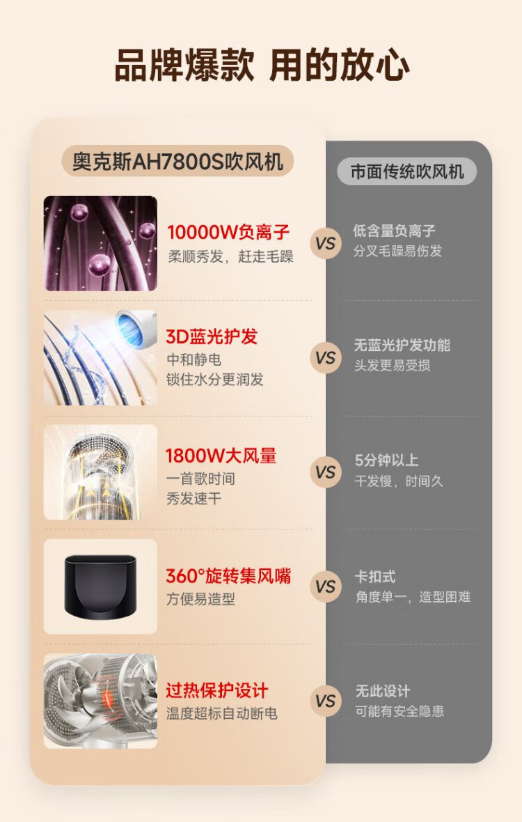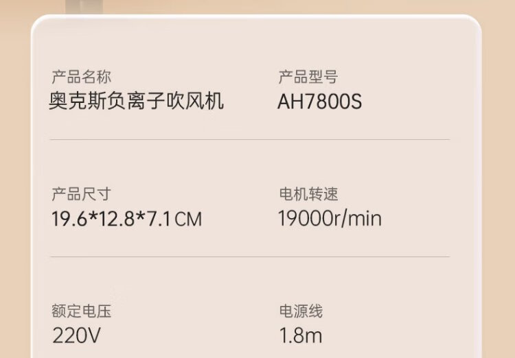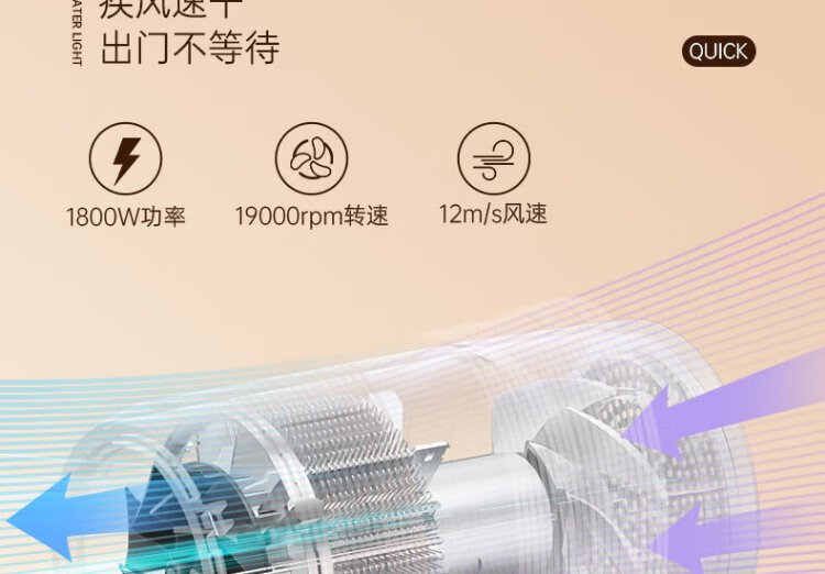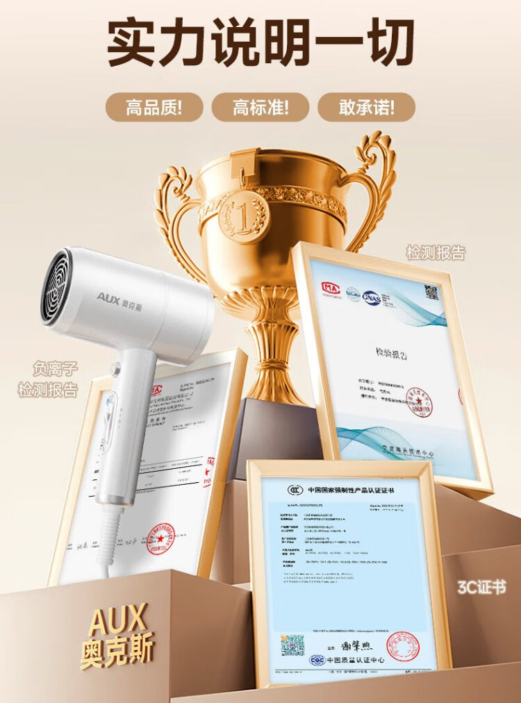 AUX hair dryer household negative ion blue light hair care does not hurt the hair dryer 1800W high-power quick-drying hair dryer portable dormitory hair dryer
