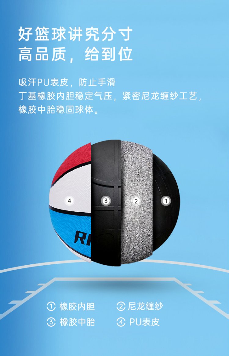 Accurate children's accurate PU universal game basketball Z319320107 bright blue/clear sky blue/French blue No. 5