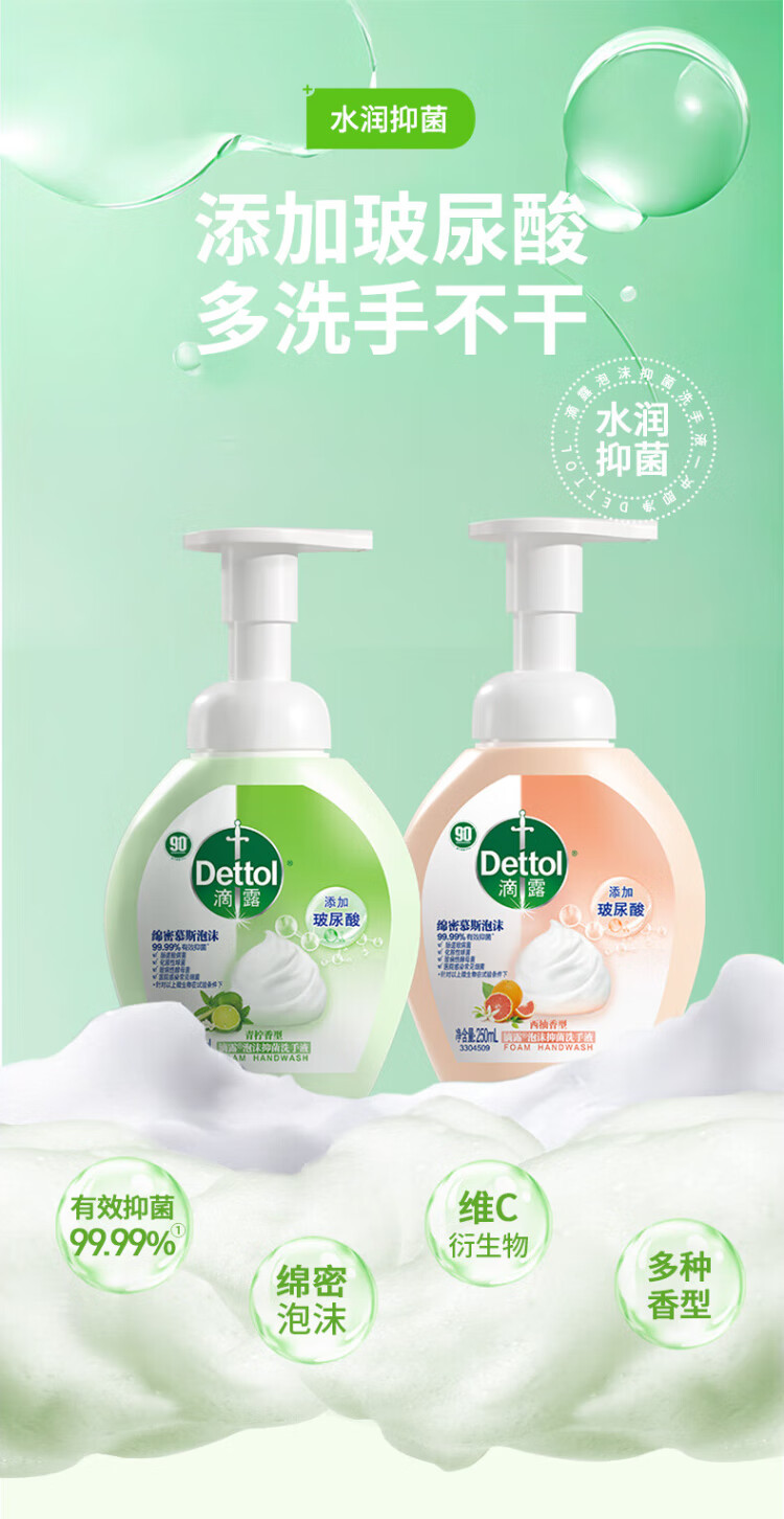 Dettol Foaming Hand Sanitizer Grapefruit 250ml + Lime 250ml Bubble Hand Sanitizer Refill Children's Antibacterial Disinfection