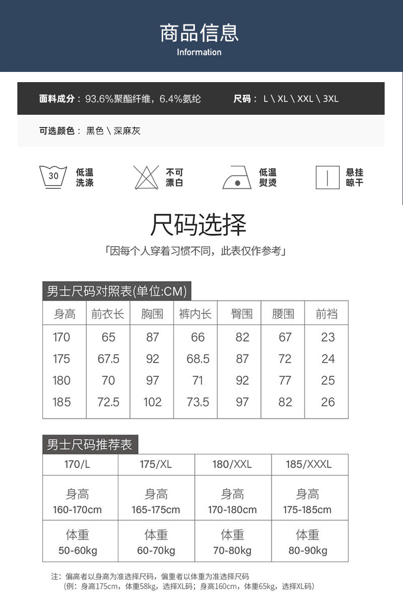 China (cm) 165 / 88-90 170 / 96-98 175 / 108-110 180 / 118-122 185 / 126-130
