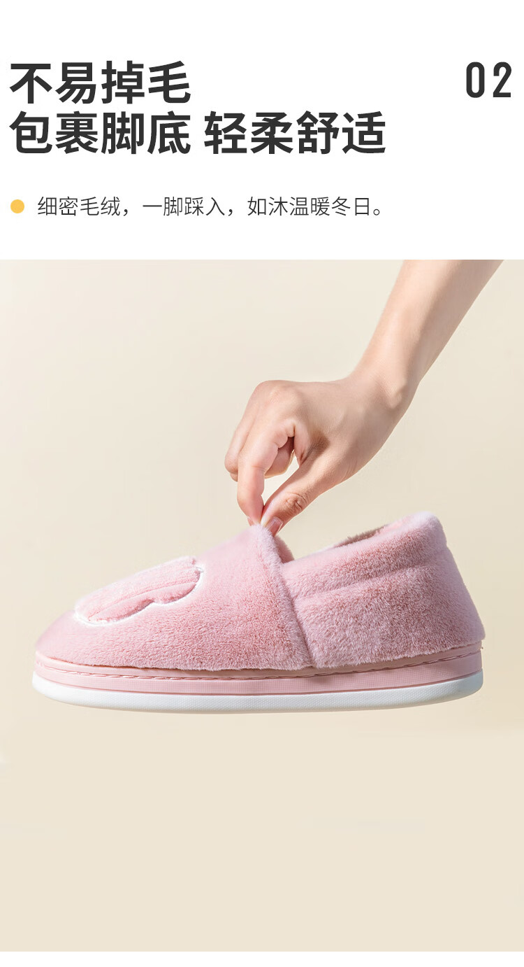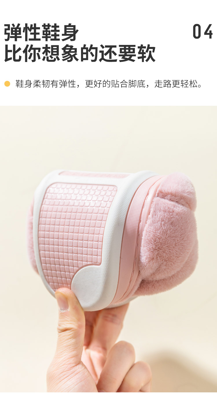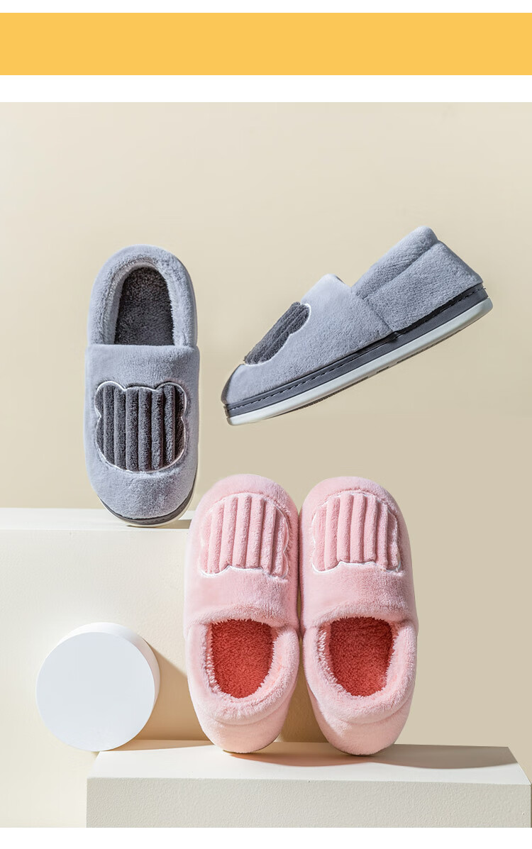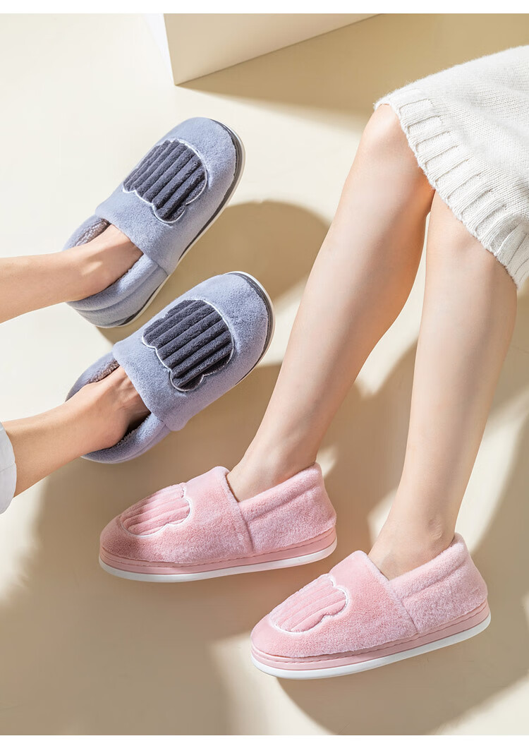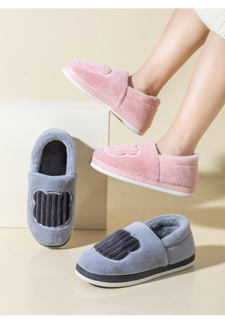 Made in Tokyo, home-made light and simple plush warm cotton slippers with heel for women, flower cluster pink 40-41 JZ-3222