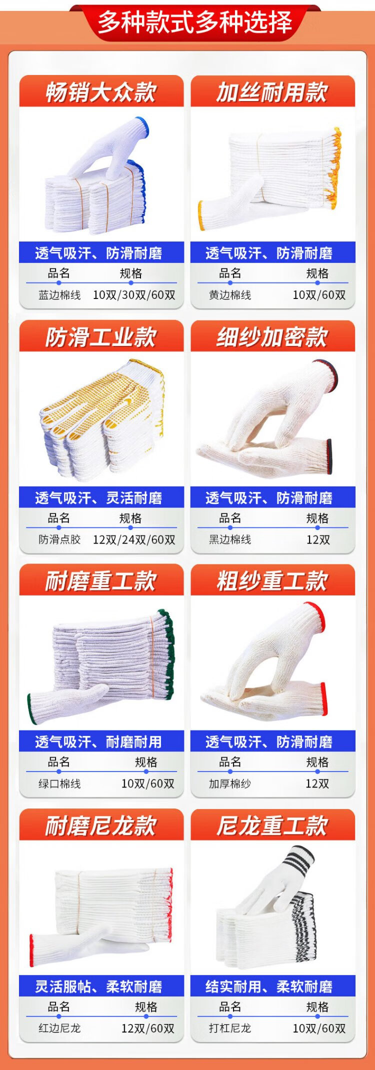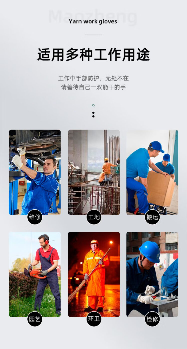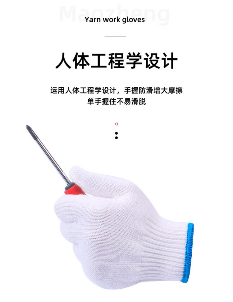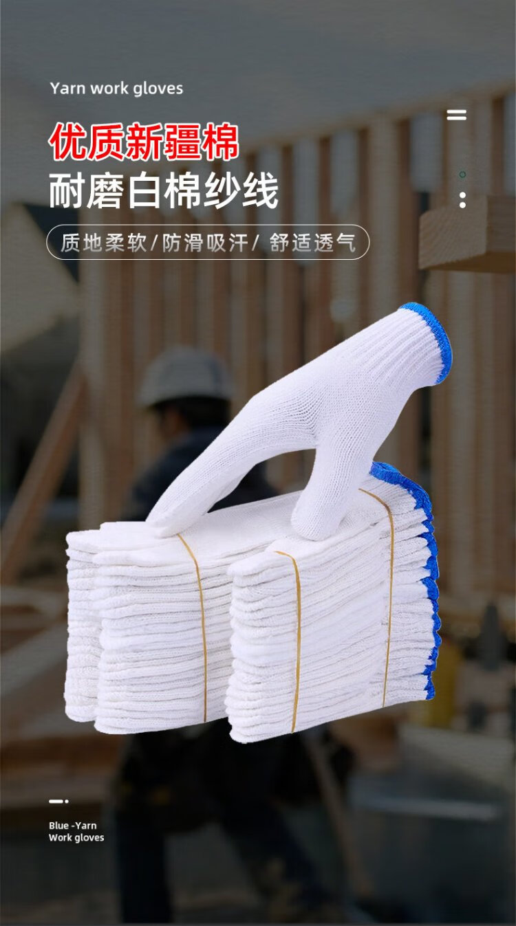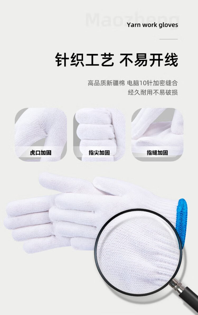 Maozheng Cotton Thread Gloves Labor Protection 60 Pairs Thickened Anti-Slip Wear-Resistant Work Site Work Industrial Labor Protection Supplies White Cotton Genuine