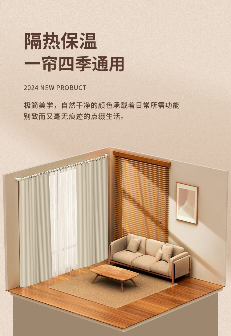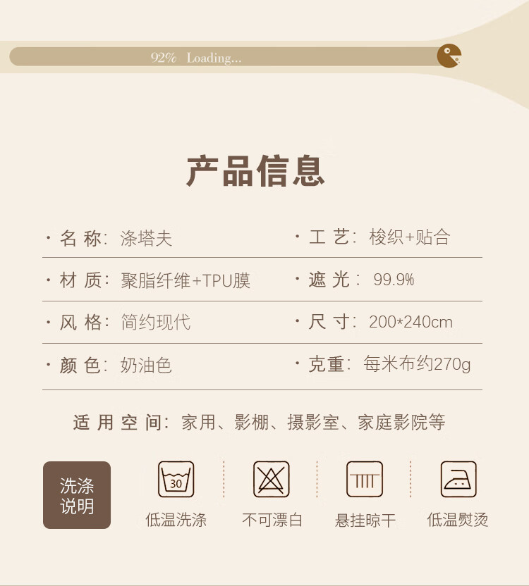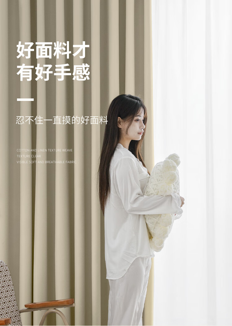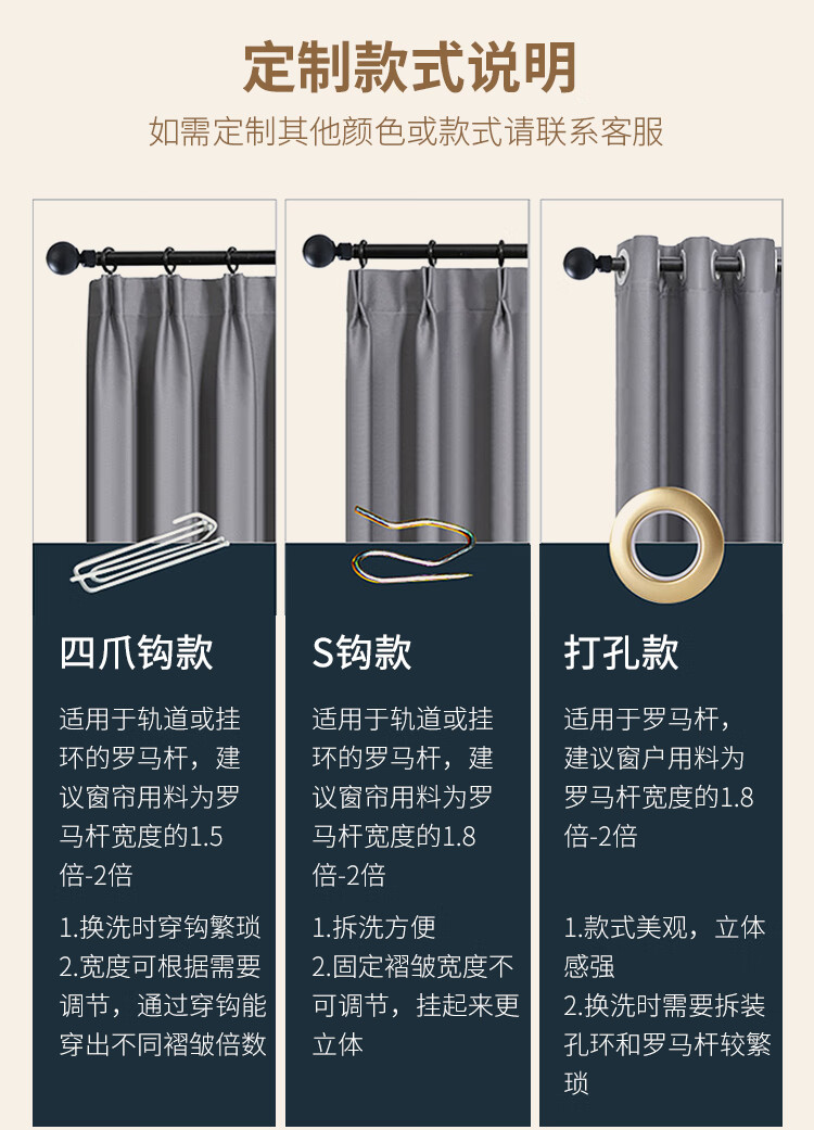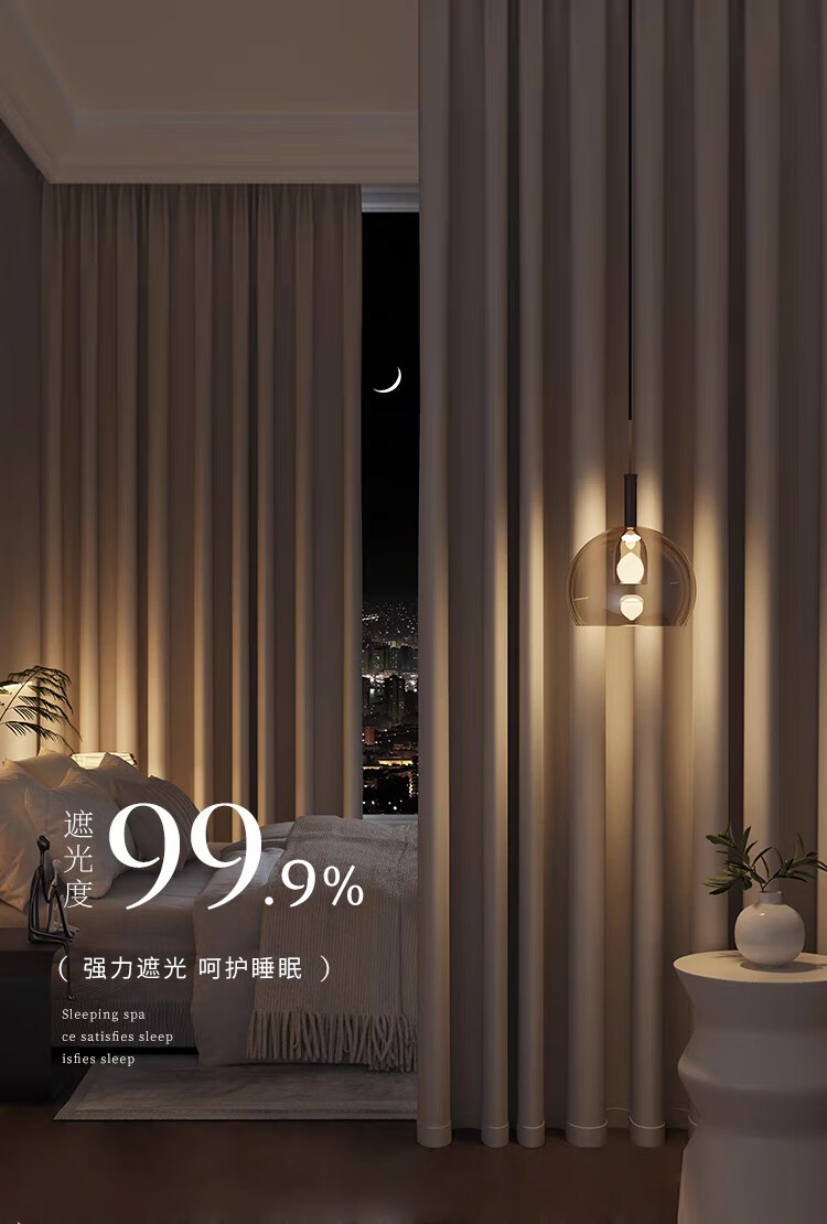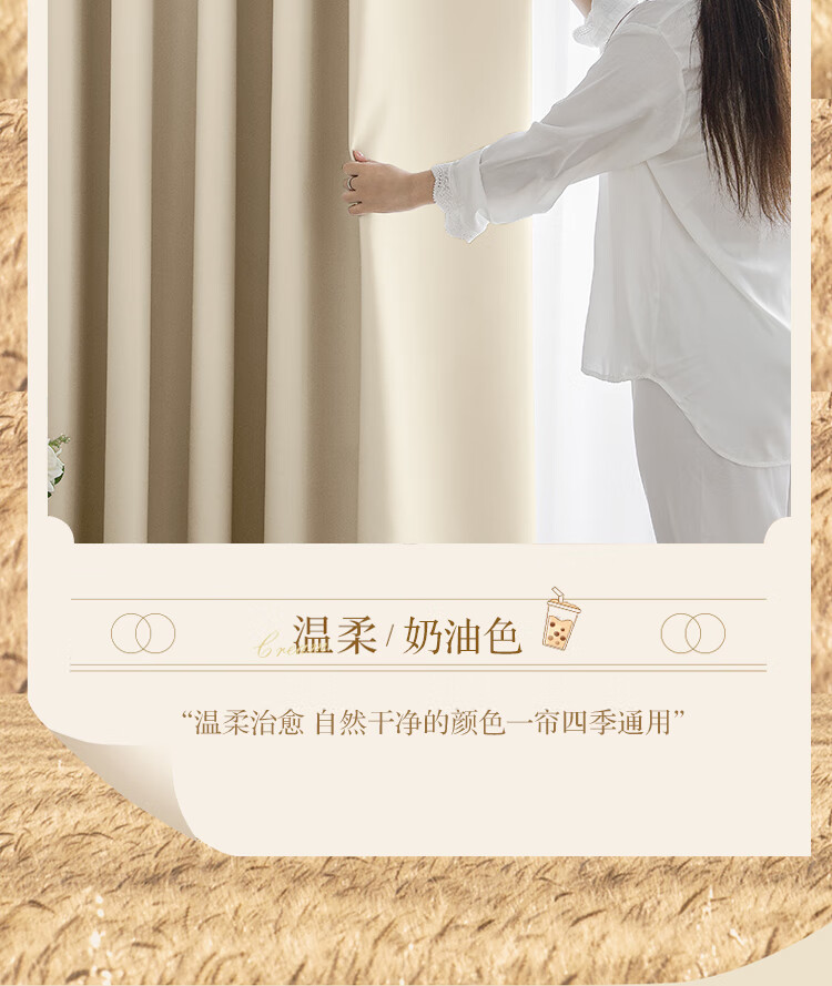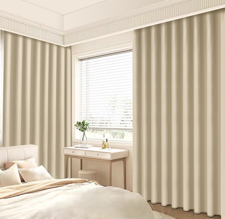 MINGJU Curtains Full Blackout Curtains Finished Curtain Fabric Sunshade Polyester Taffeta Cream Hook Type 2.0*2.4 Single Piece