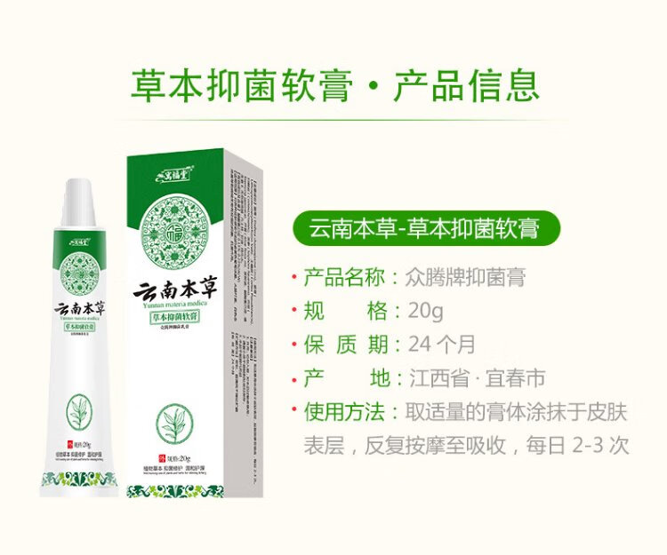 Yunnan Materia Medica Baicao Antipruritic Cream 20g*1 Antibacterial Thigh Root Internal Test Moist Anus Scrotum Moist Men and Women