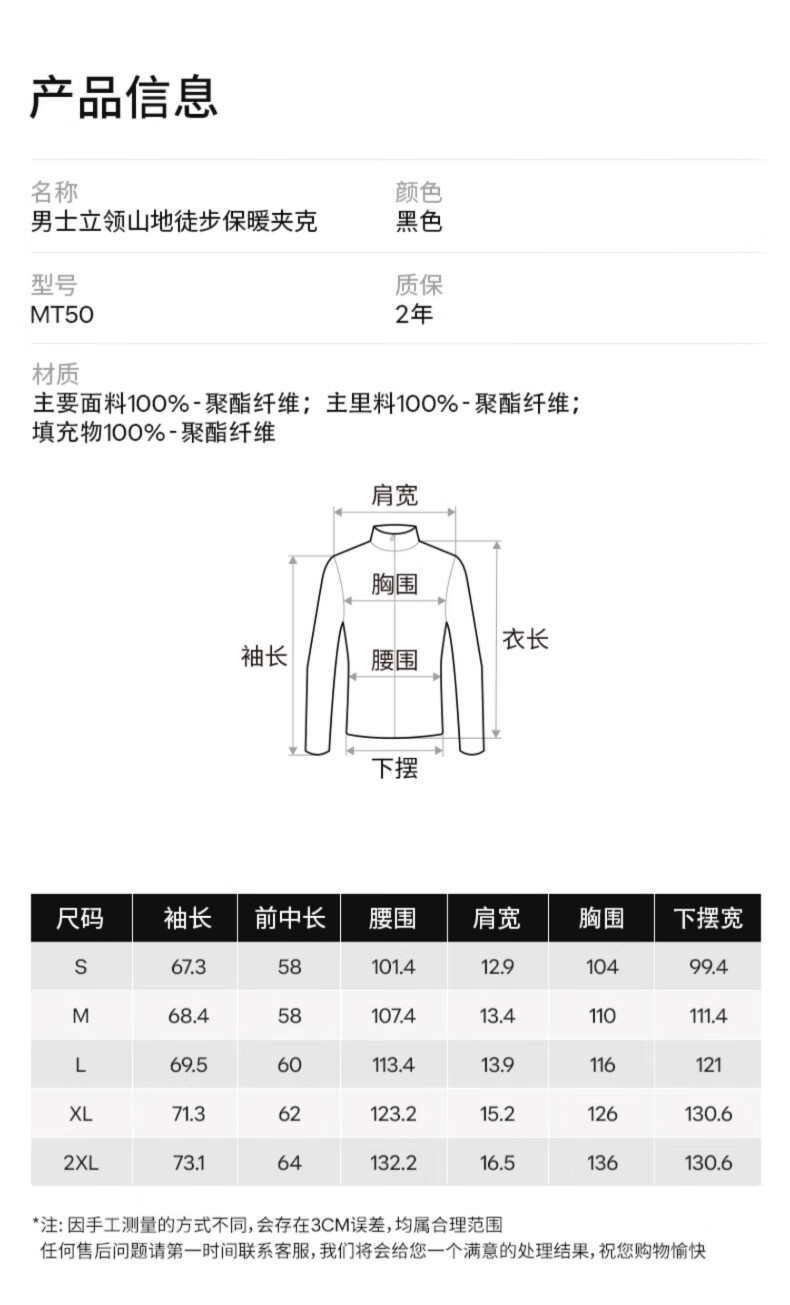 Decathlon outdoor sports warm and comfortable men's padded jacket black 2121845 L