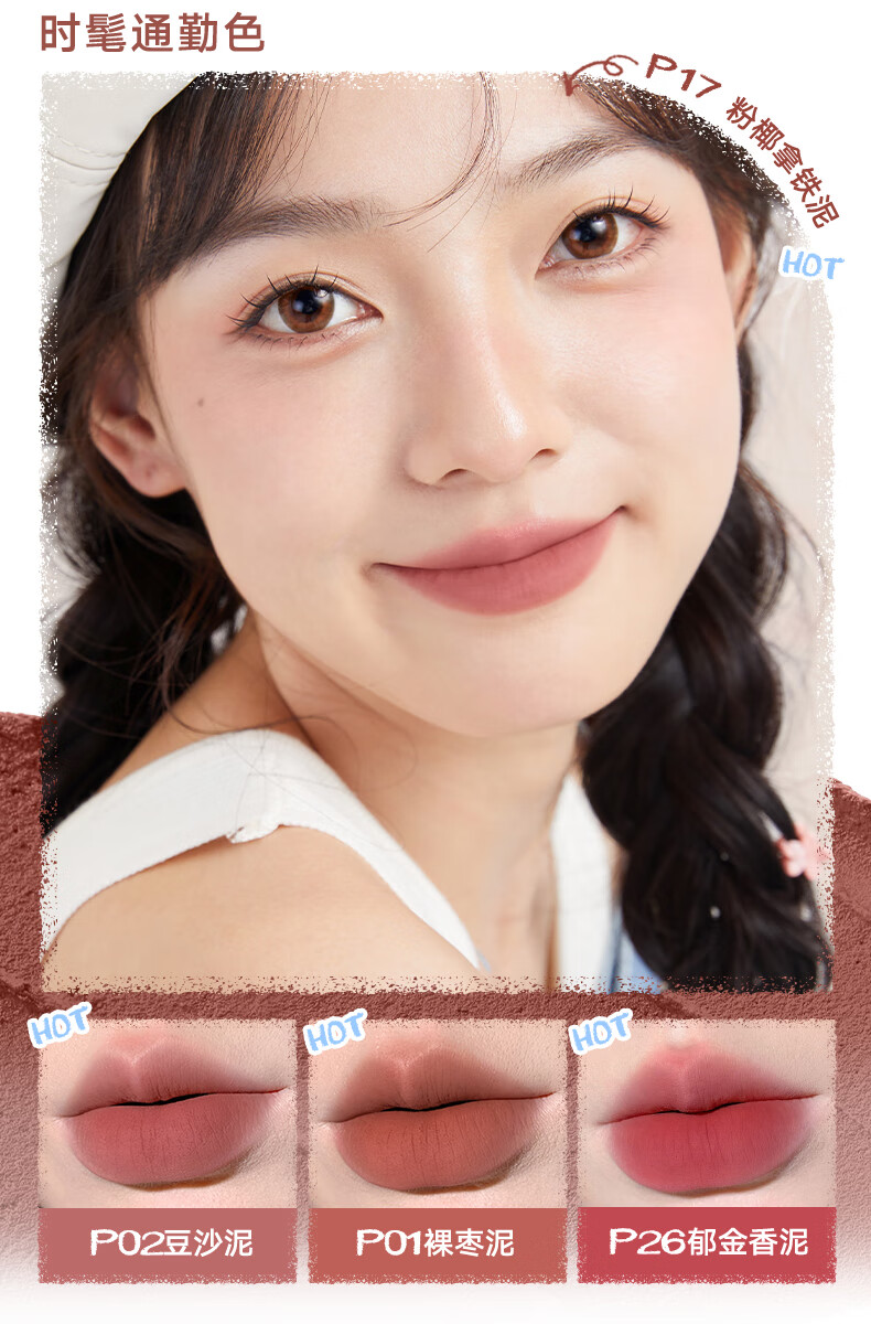 Judydoll Small Milk Mud Lip Mud Lipstick Matte Matte Surface Not Easy to Stick Moisturizing Birthday Gift for Girls P10 Hawthorn Mud