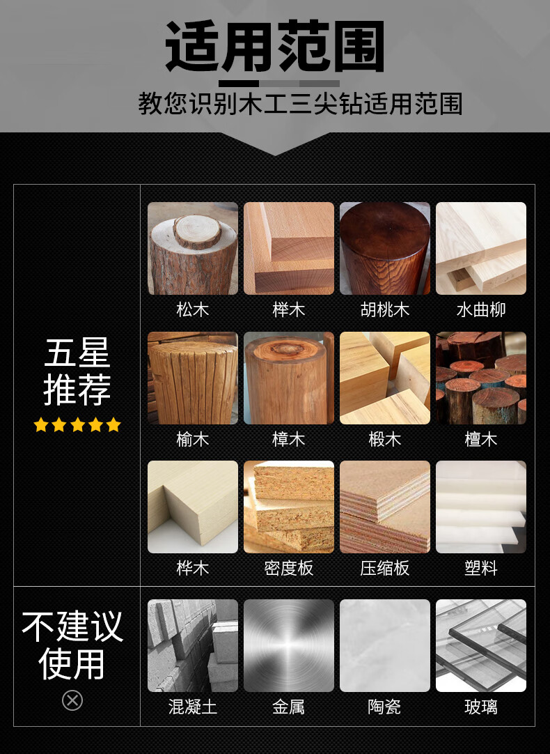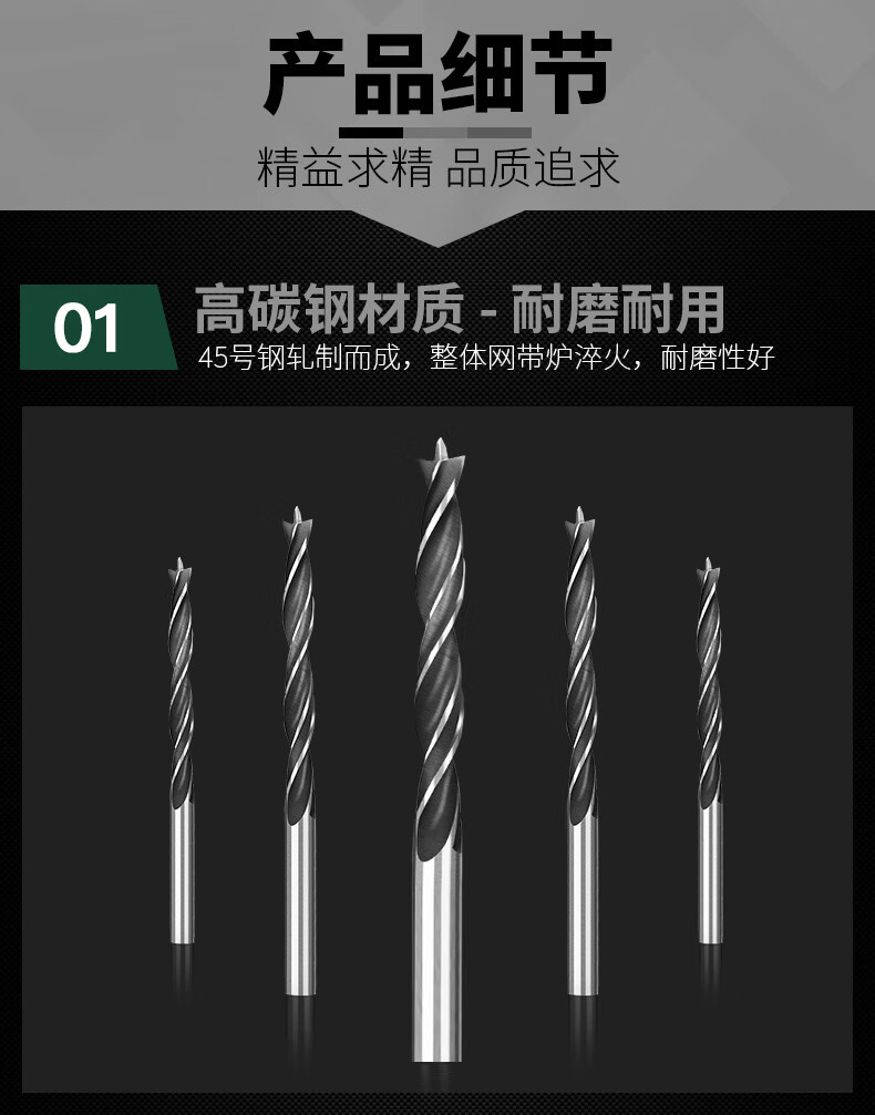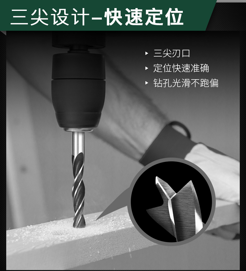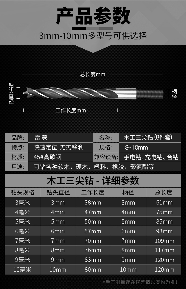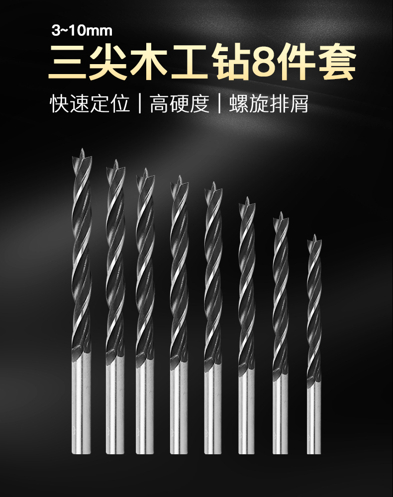 Raymond three-point round handle woodworking drill bit set drill twist opening drill wood hole expander 3-10mm eight-piece set