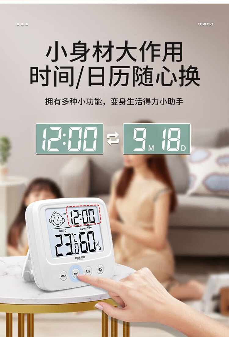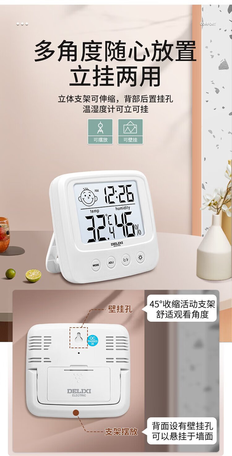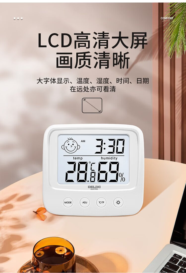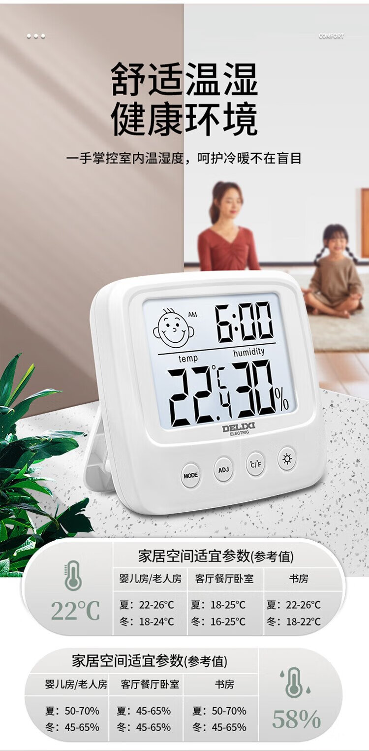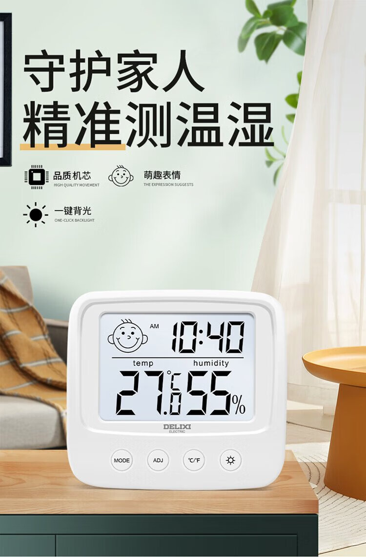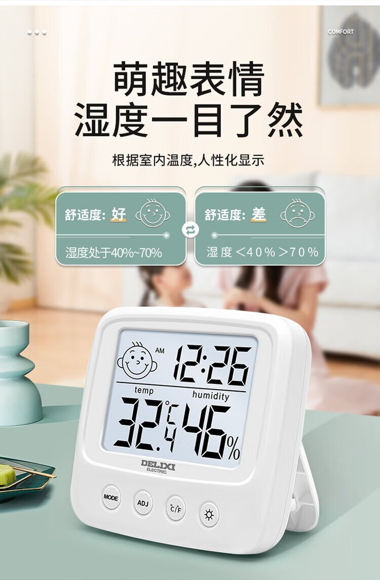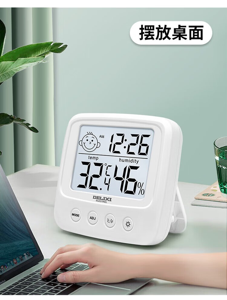 DELIXI ELECTRIC home indoor thermometer with smiley face baby room alarm clock timing electronic digital display temperature and humidity meter thermometer