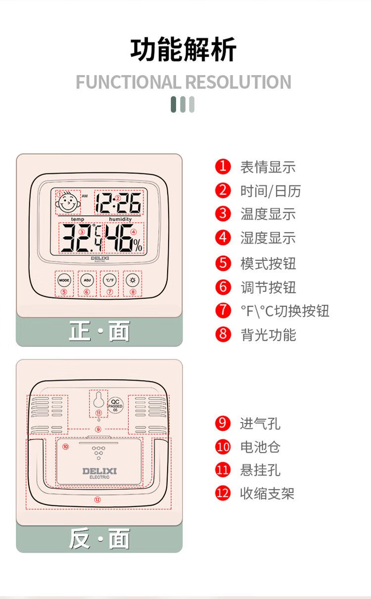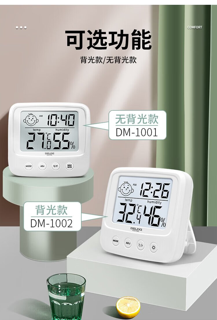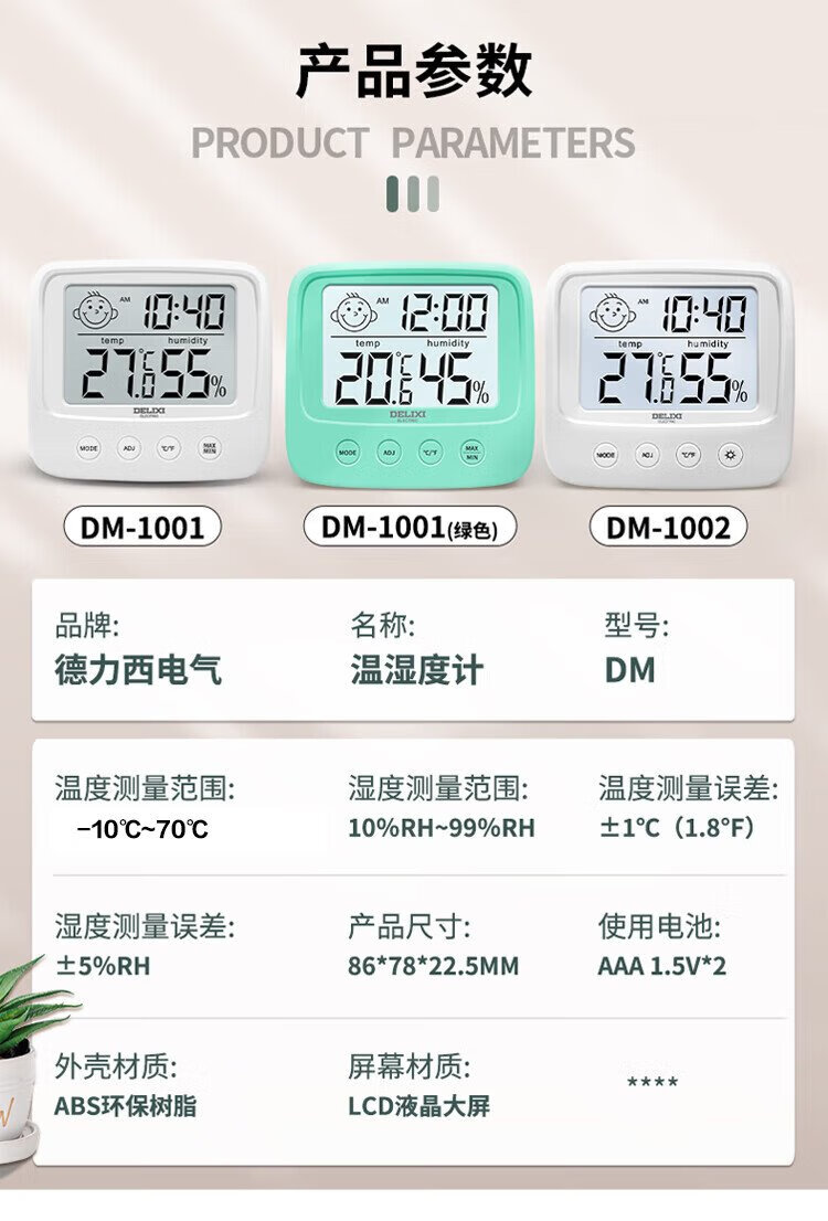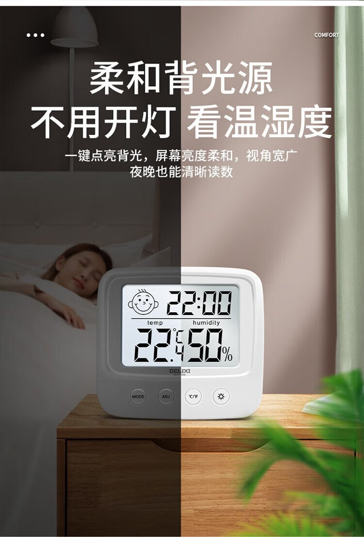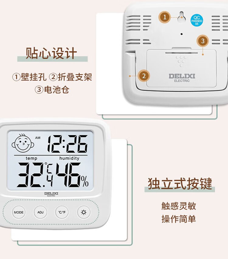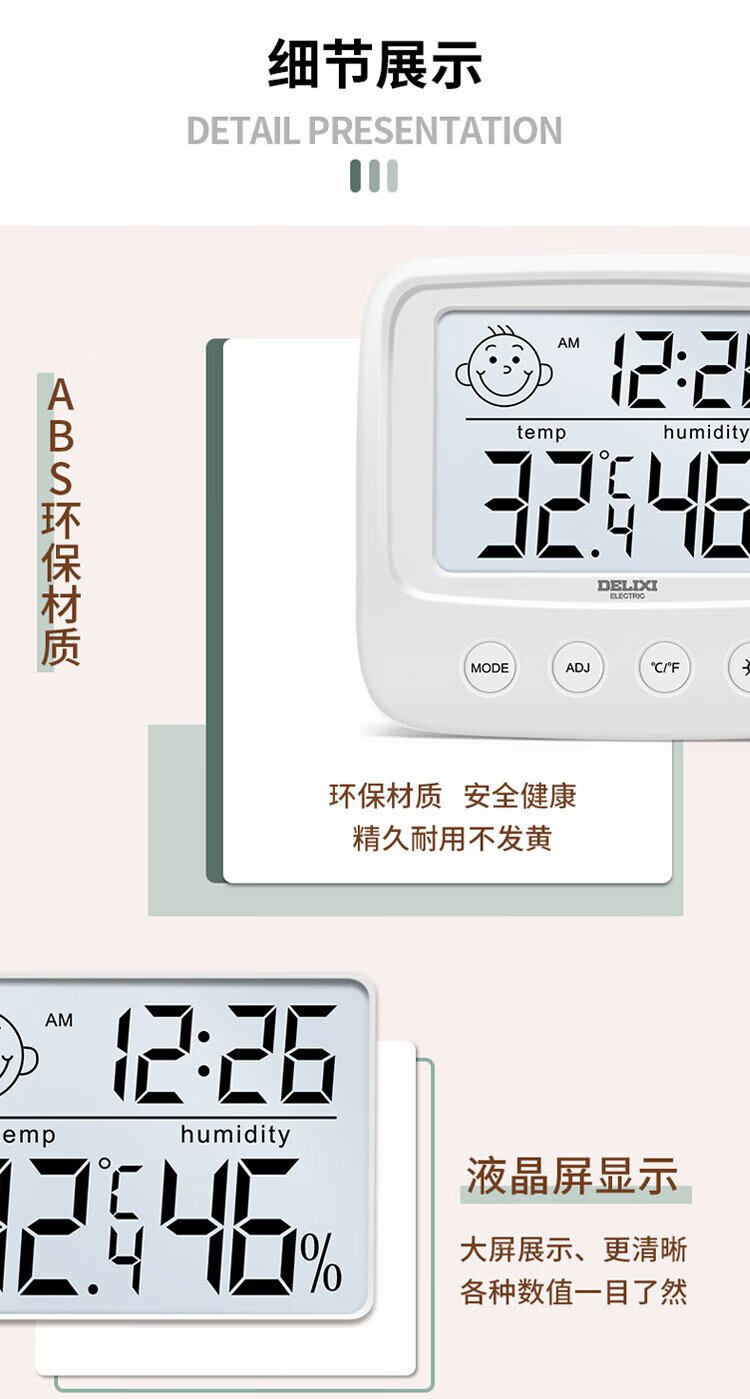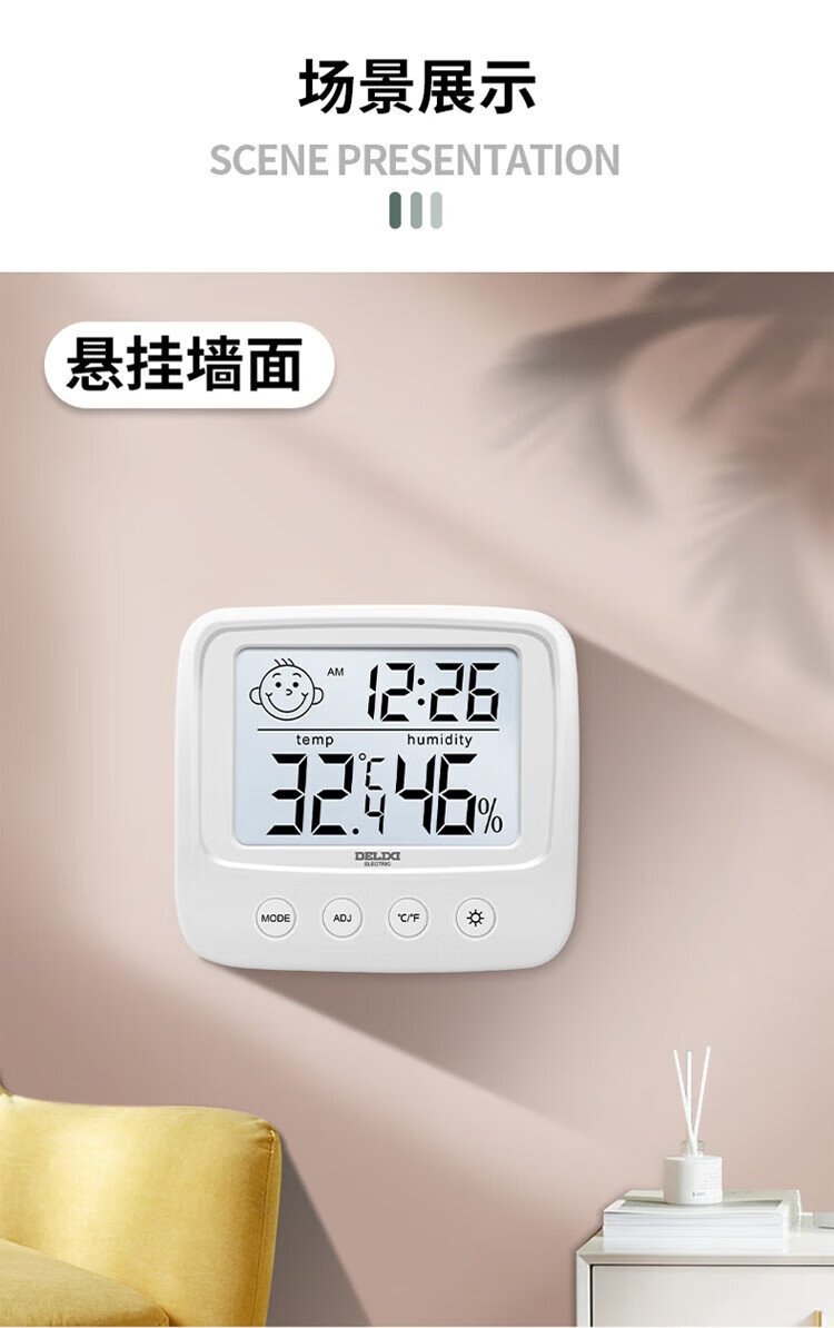 DELIXI ELECTRIC home indoor thermometer with smiley face baby room alarm clock timing electronic digital display temperature and humidity meter thermometer