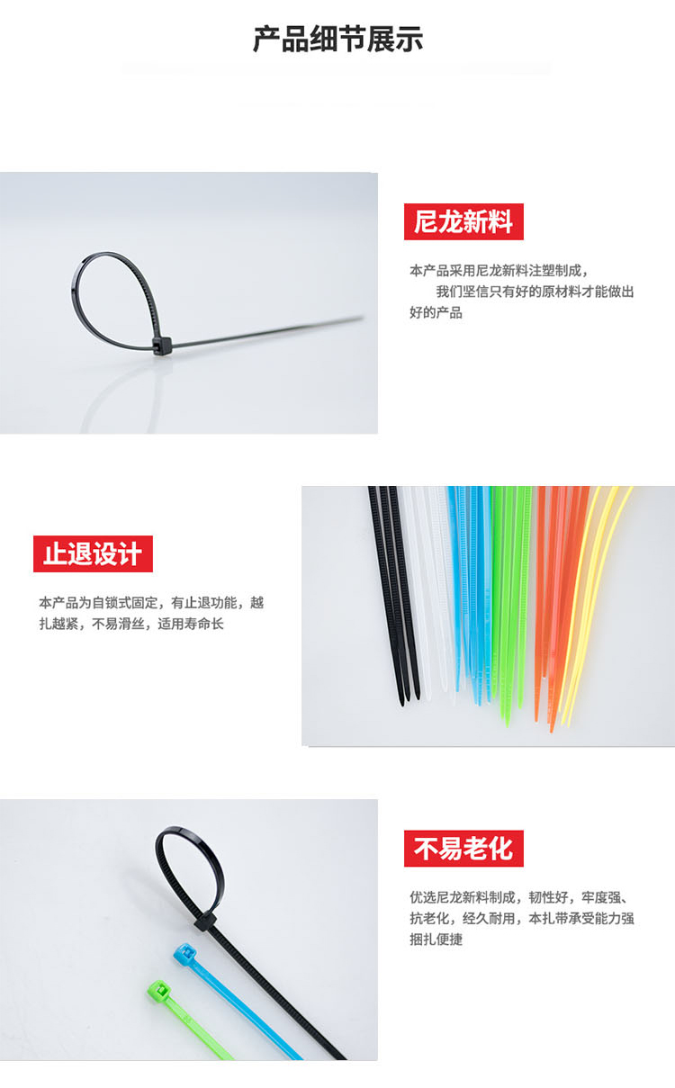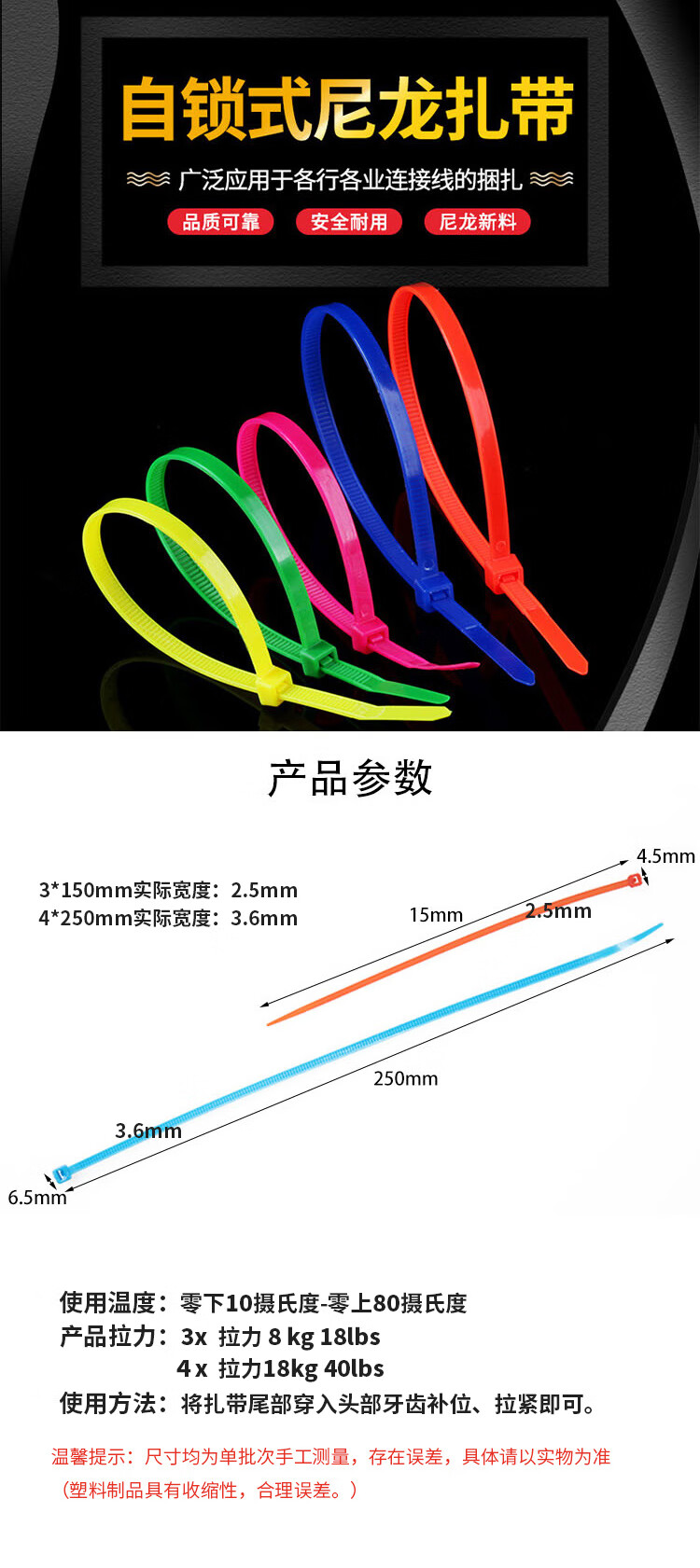 海斯迪克【京仓配送】 HKHE-064 彩色尼龙扎带 自锁式扎带 线缆理线束线捆绑带 4*250mm(100条)红色