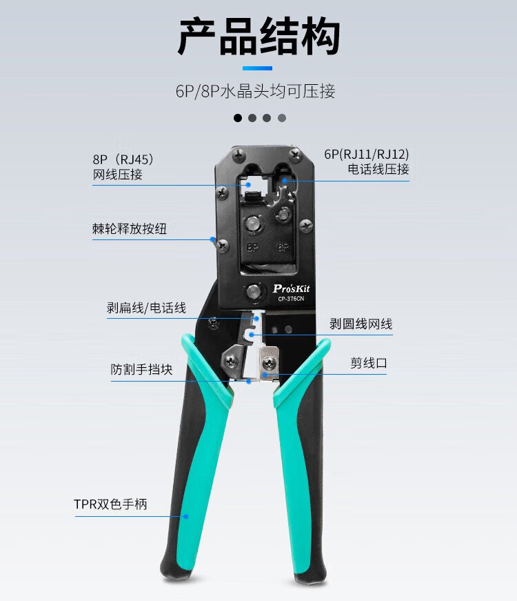 Baogong (Pro sKit) network cable pliers Internet phone crystal head crimping pliers 6P/8P household labor-saving ratchet stripping fitter CP-376CN