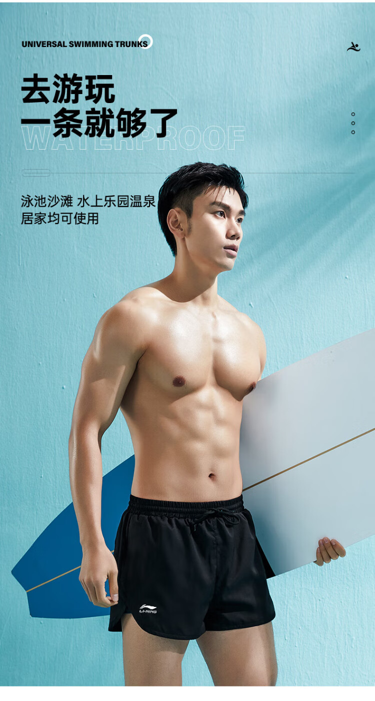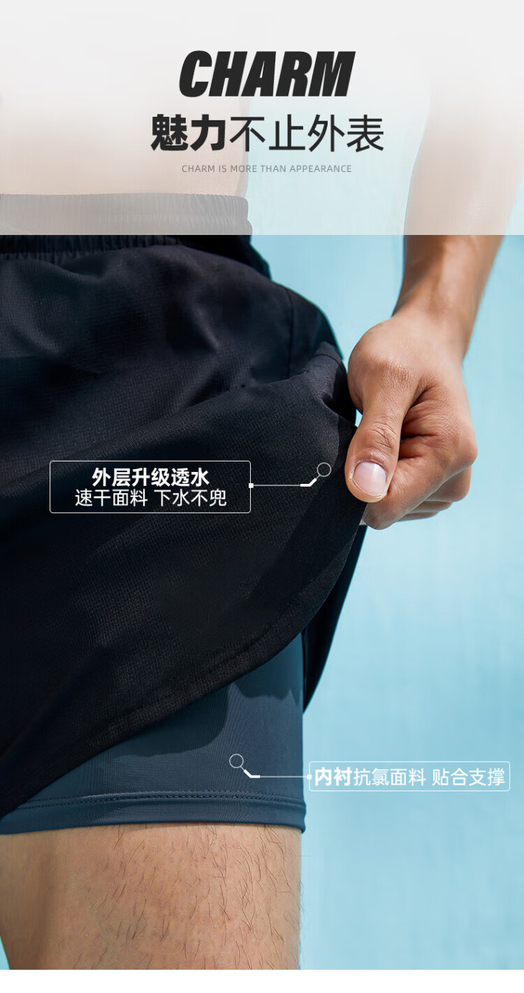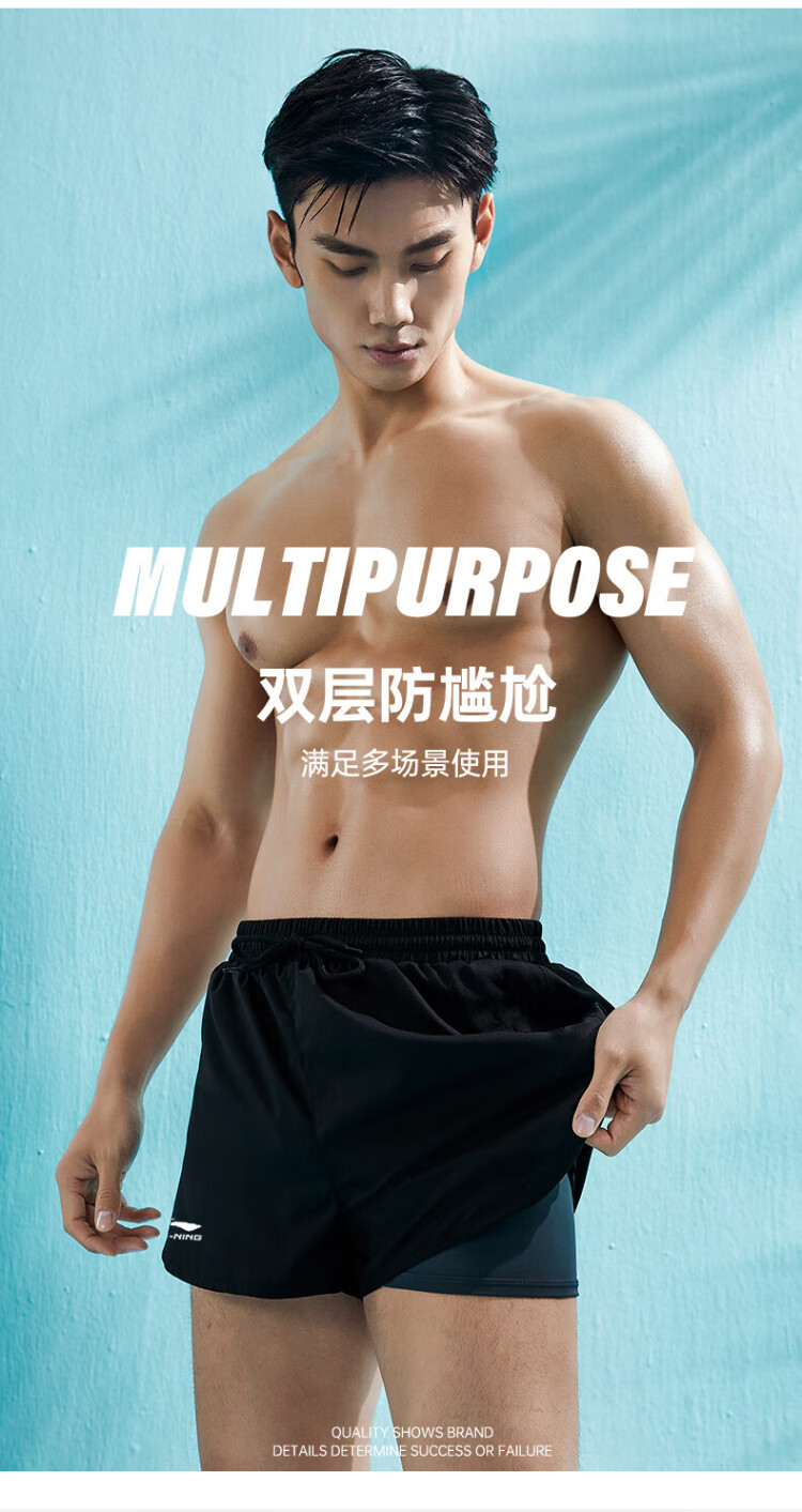 Li Ning (LI-NING) swimming trunks men's anti-embarrassing swimming trunks boxer double-layer anti-exposure amphibious beach trunks 337 XL