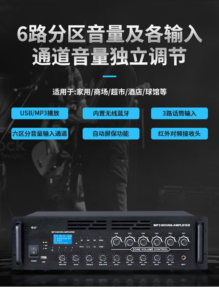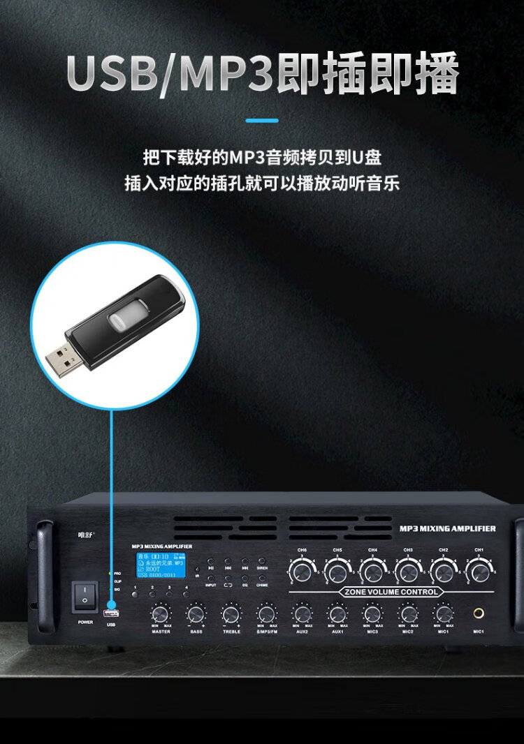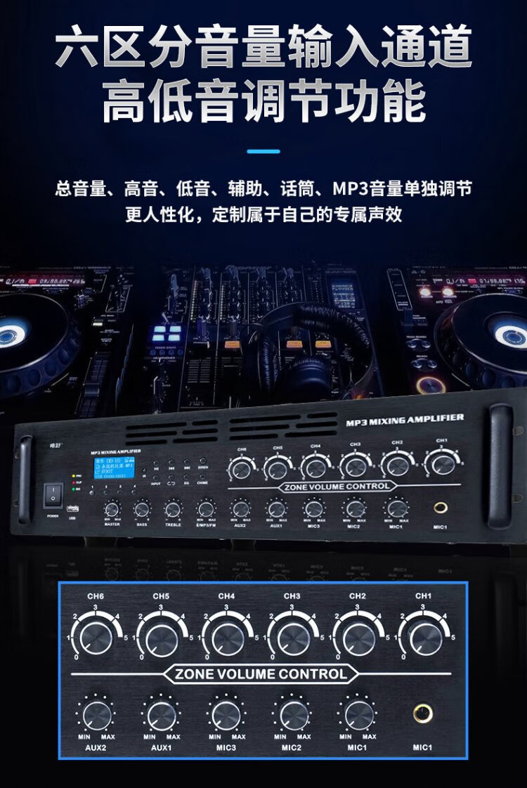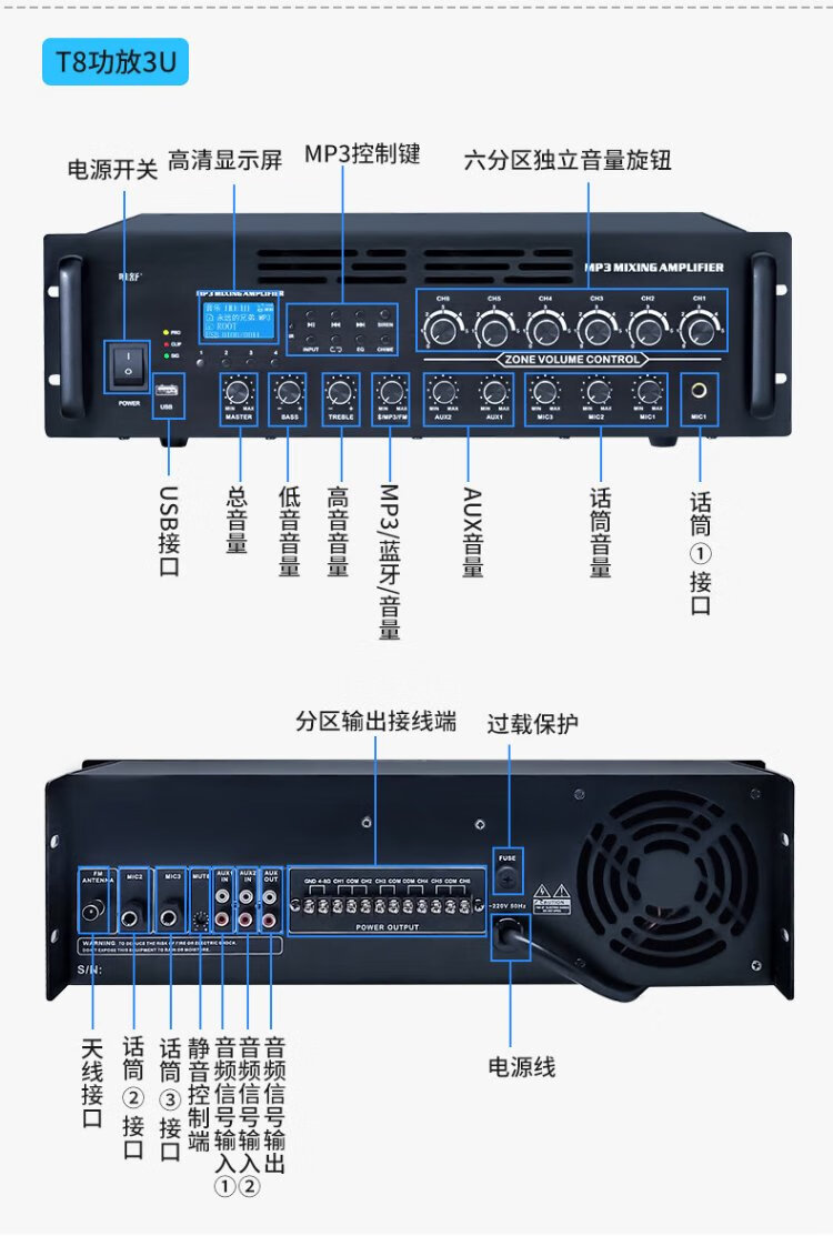 Weishu T8-1000 constant voltage power amplifier 6-zone campus broadcast system background music high-power amplifier MP3 decoding chip radio power amplifier with remote control 1000W