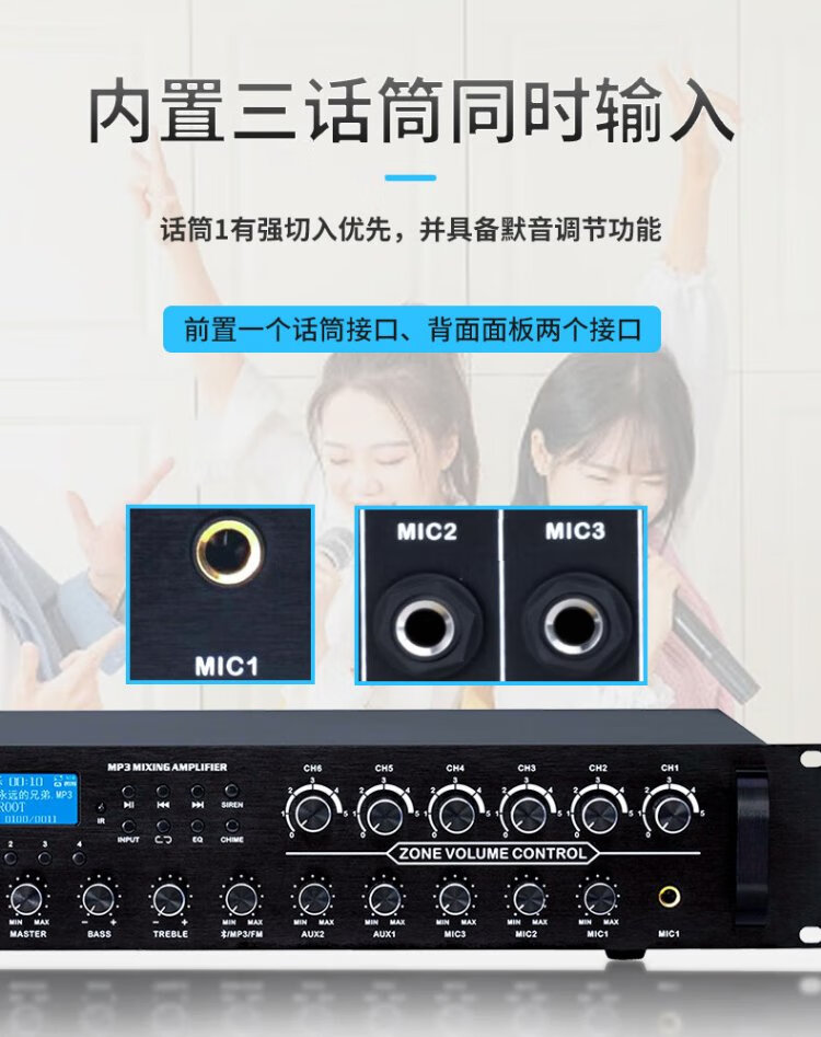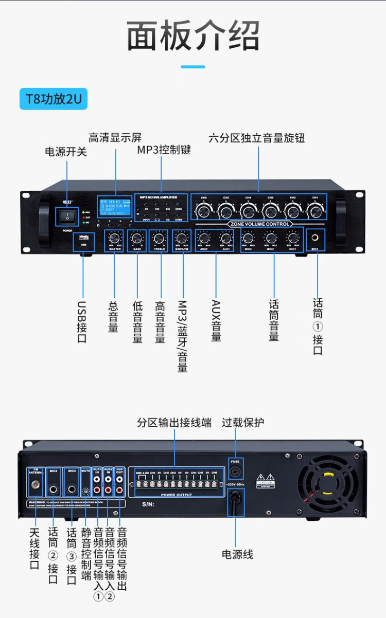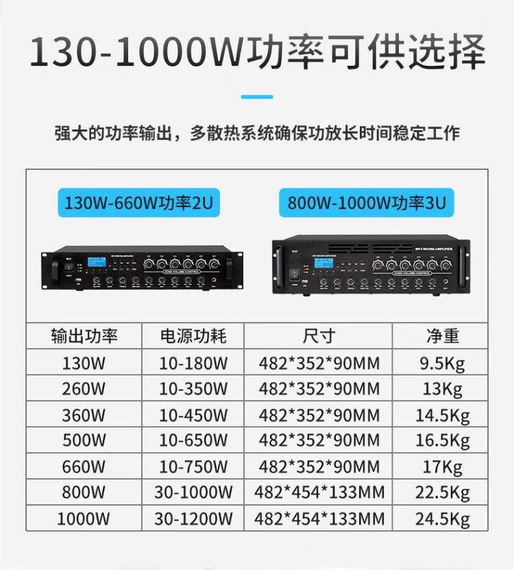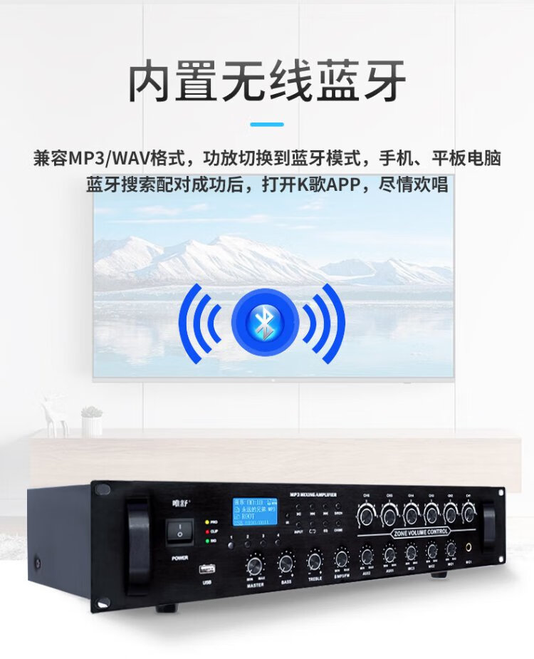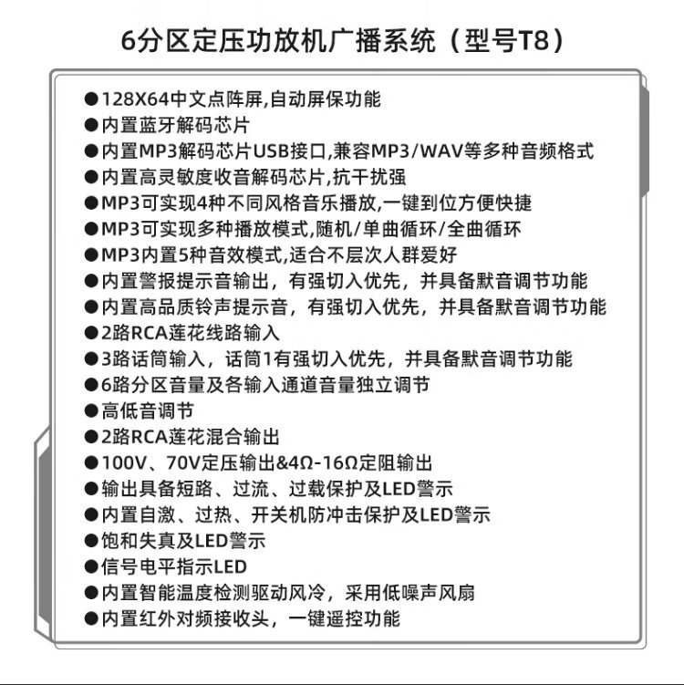 Weishu T8-1000 constant voltage power amplifier 6-zone campus broadcast system background music high-power amplifier MP3 decoding chip radio power amplifier with remote control 1000W