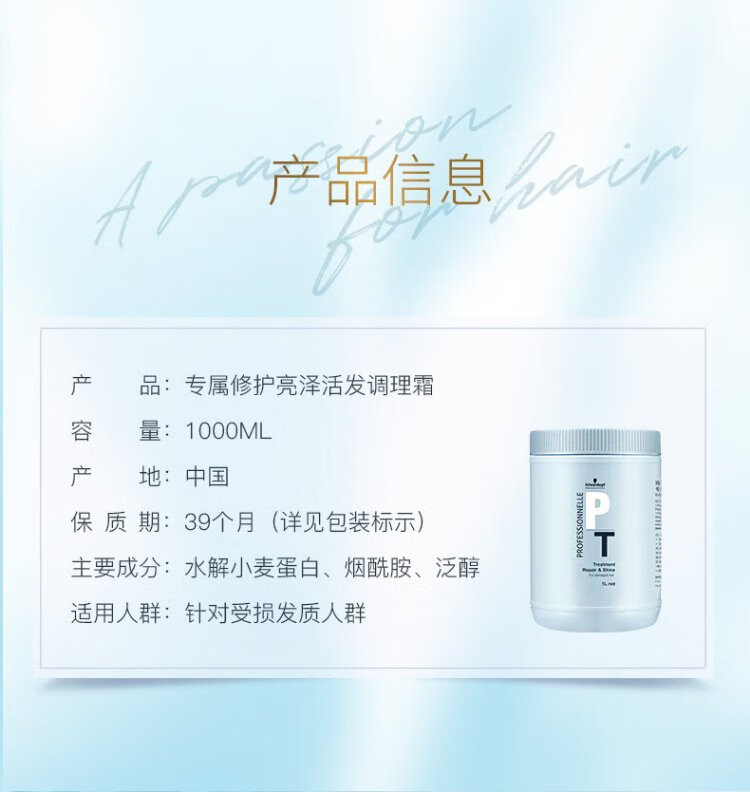 Schwarzkopf Professional Repair and Shine Hair Mask 1000ml No steaming and smoothing to improve dry and frizzy hair mask care cream to repair damaged hair
