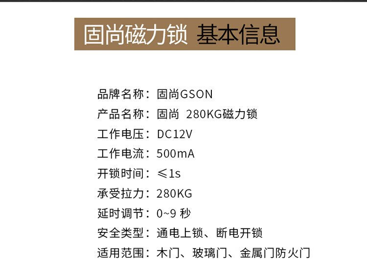 Gushang GSON electromagnetic lock magnetic lock single door 280 kg 12V electromagnetic lock with door magnet outdoor