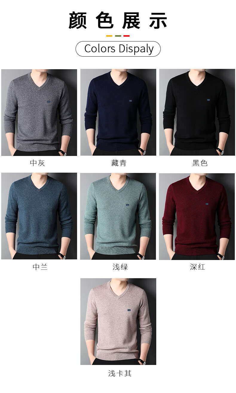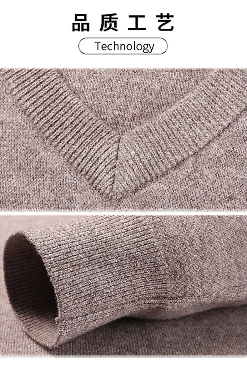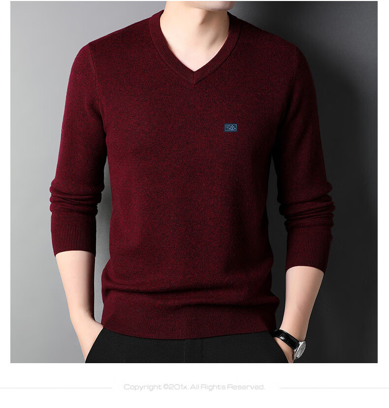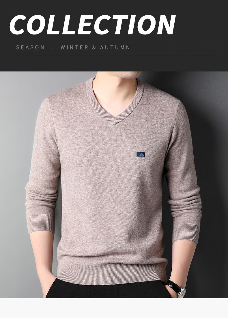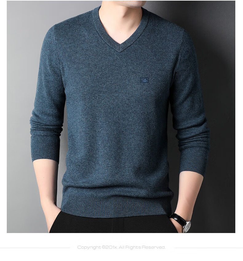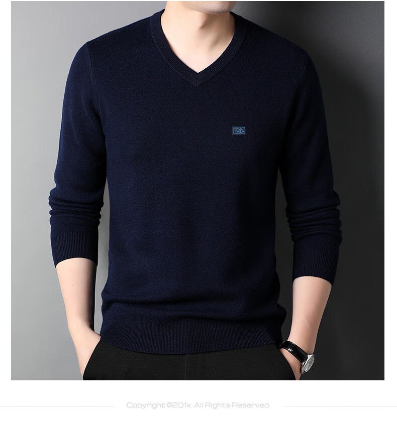 恒源祥100%纯羊毛衫男士V领加厚纯色秋冬保暖毛衣HJ198 藏青 180/96A