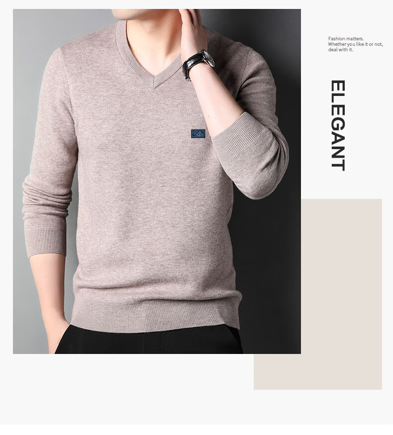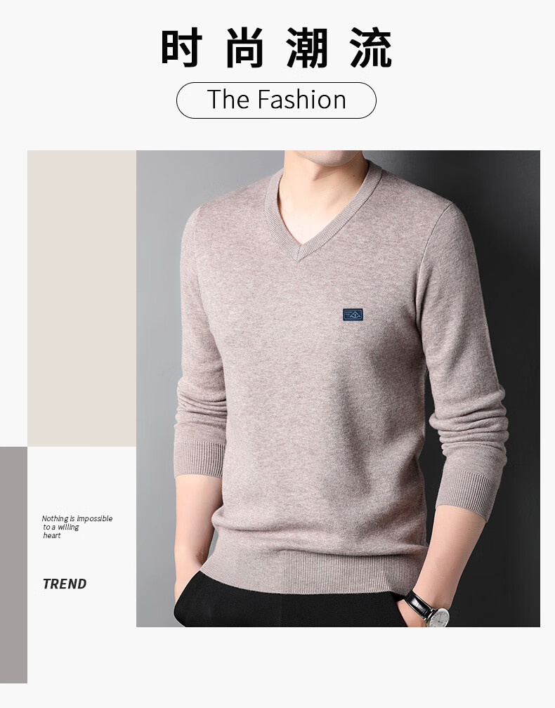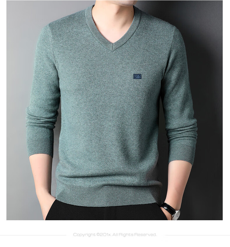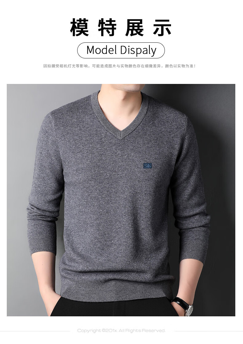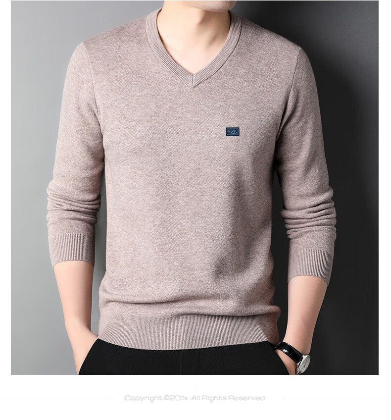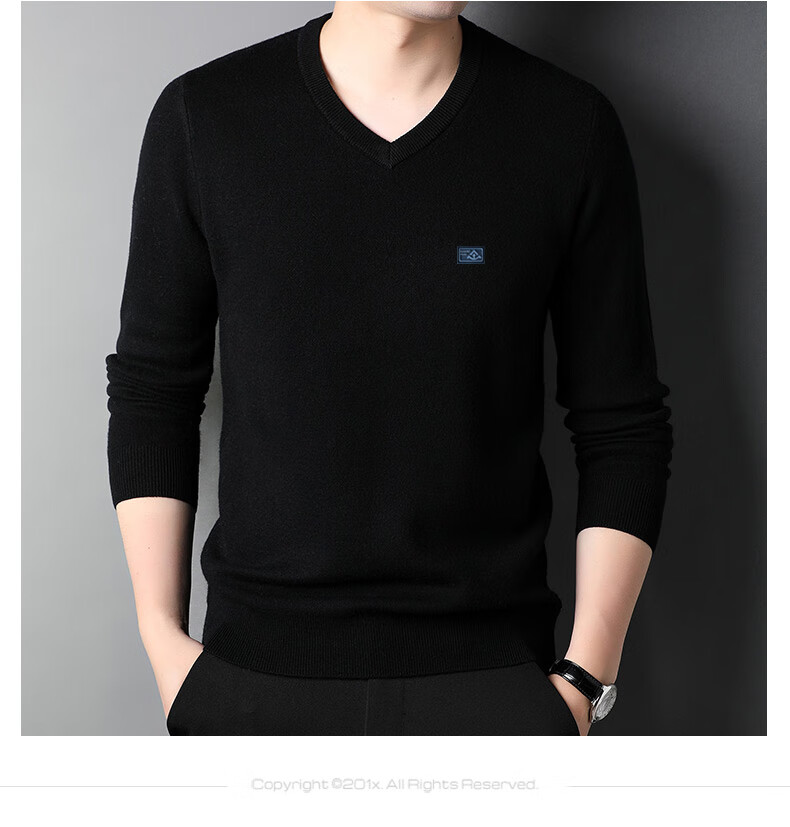 恒源祥100%纯羊毛衫男士V领加厚纯色秋冬保暖毛衣HJ198 藏青 180/96A