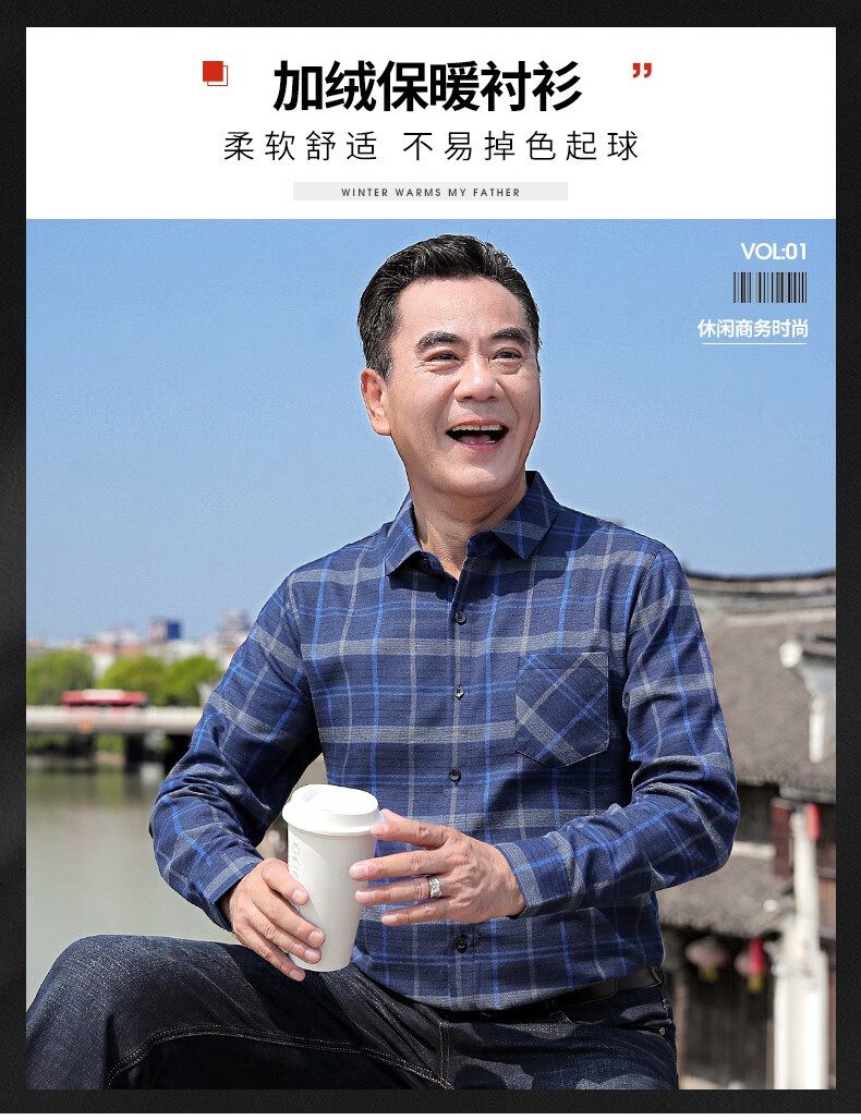 Classic car dad's velvet shirt men's winter warm thickened men's shirt middle-aged and elderly men's clothing for the elderly