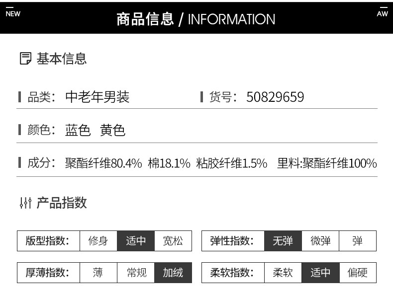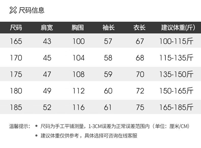 China (cm) 165 / 88-90 170 / 96-98 175 / 108-110 180 / 118-122 185 / 126-130