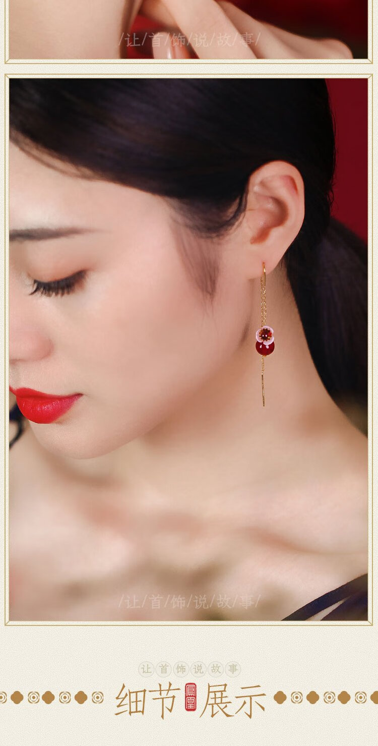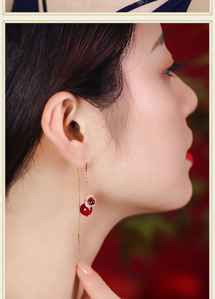 Phoenix Nirvana Red Agate Earrings Women's Tassel Earrings Niche Design Earrings High-end Ear Wire Jewelry Birthday Gifts for Women
