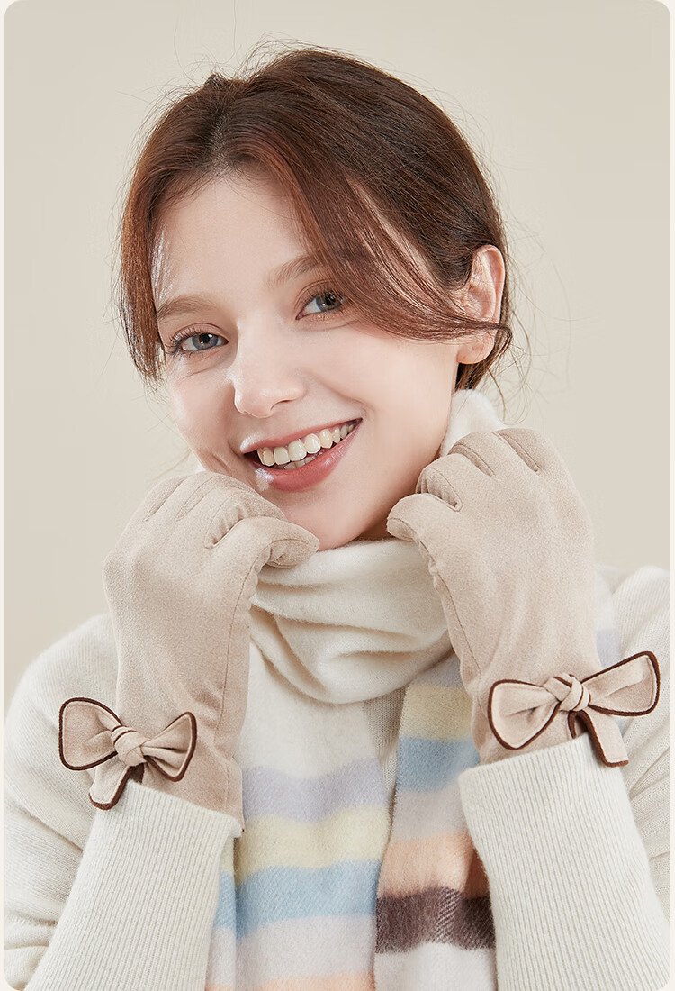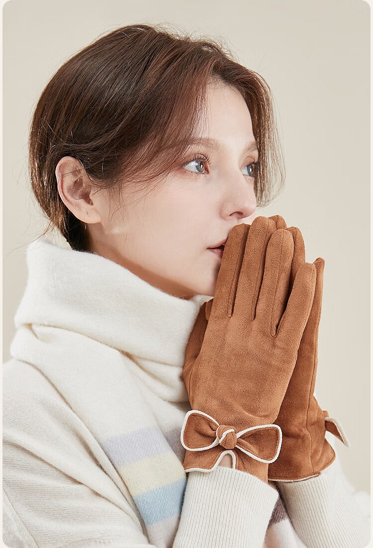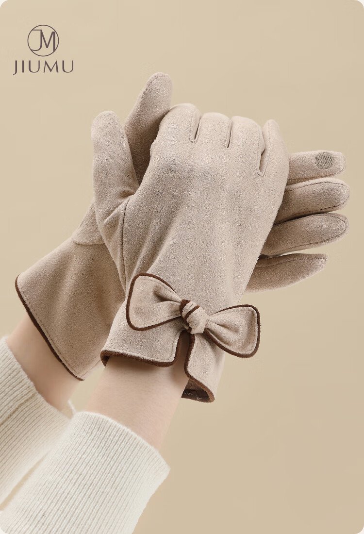 JIUMU warm gloves women's winter thickened velvet finger gloves outdoor driving and riding windproof and cold-proof touch screen gloves