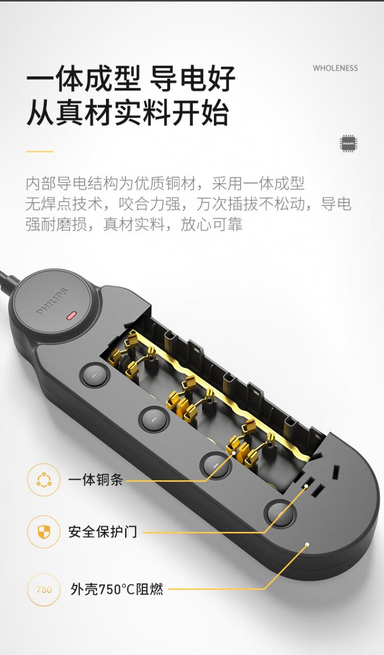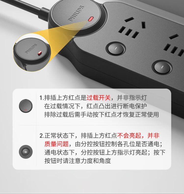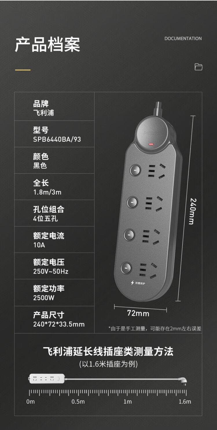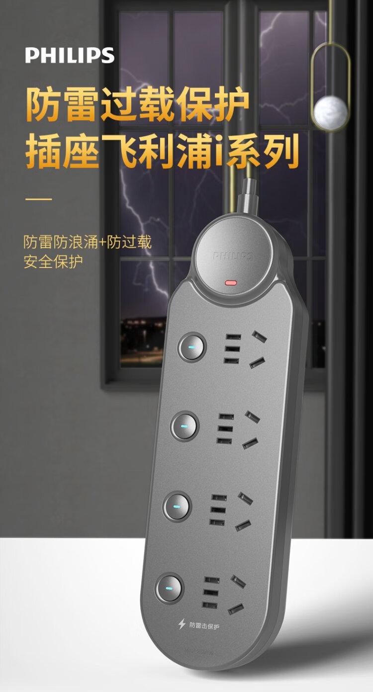 Philips (PHILIPS) lightning protection socket 4-position sub-control 1.8 meters over-power protection plug strip/socket board/socket strip/terminal board/pull line board SPB6440BA/93