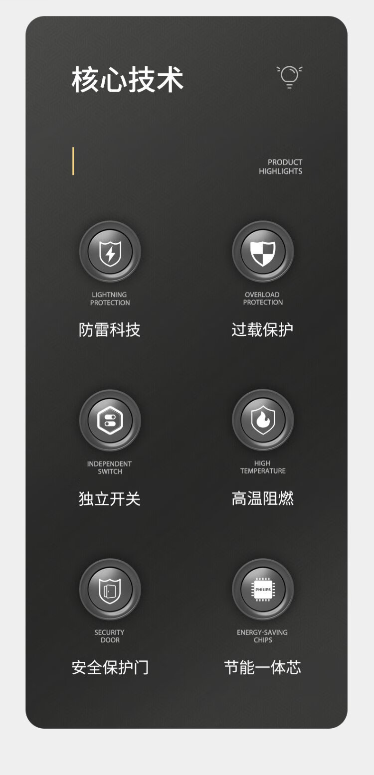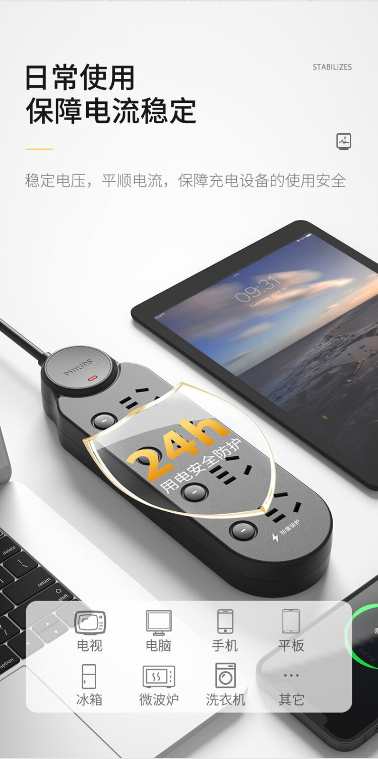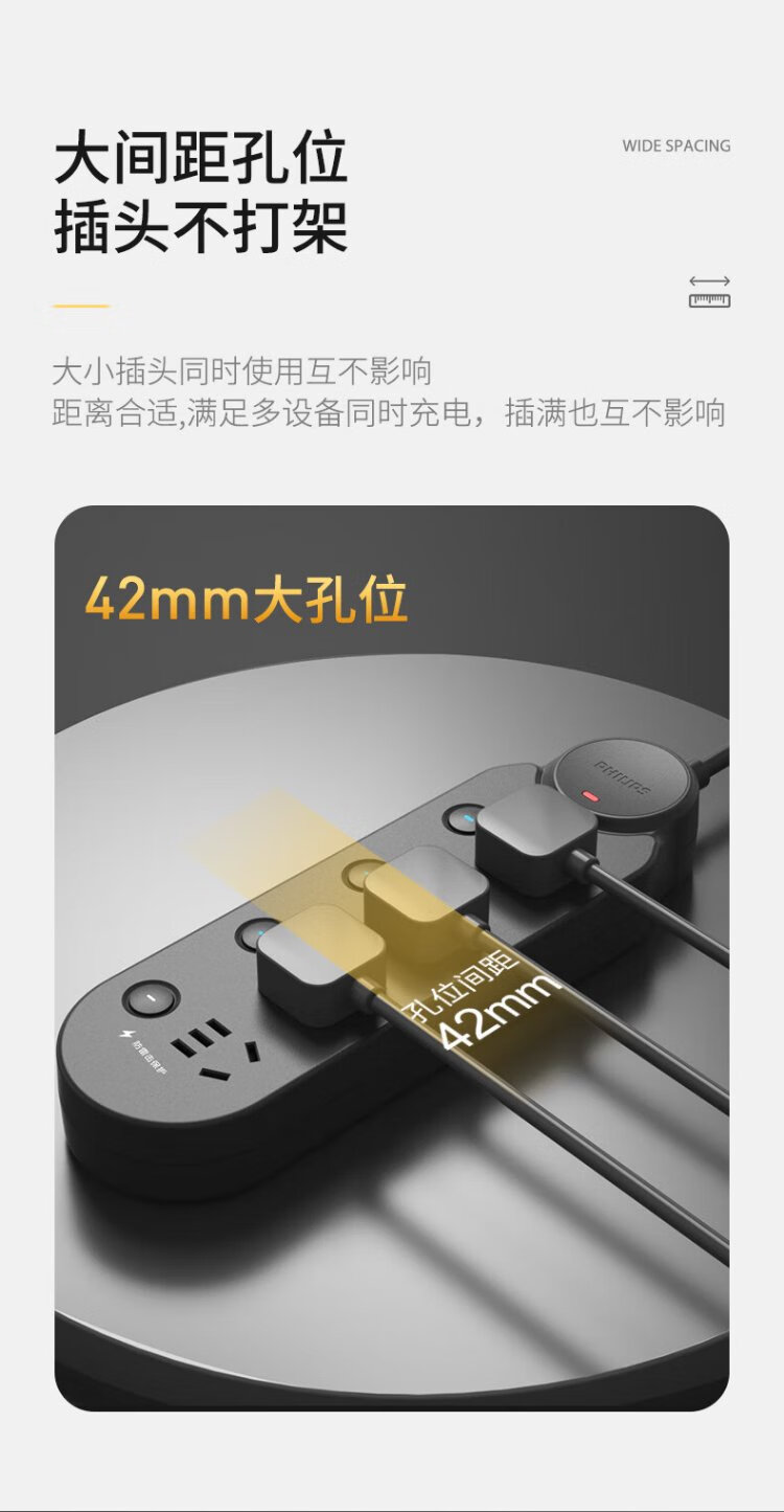 Philips (PHILIPS) lightning protection socket 4-position sub-control 1.8 meters over-power protection plug strip/socket board/socket strip/terminal board/pull line board SPB6440BA/93
