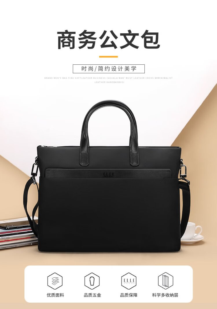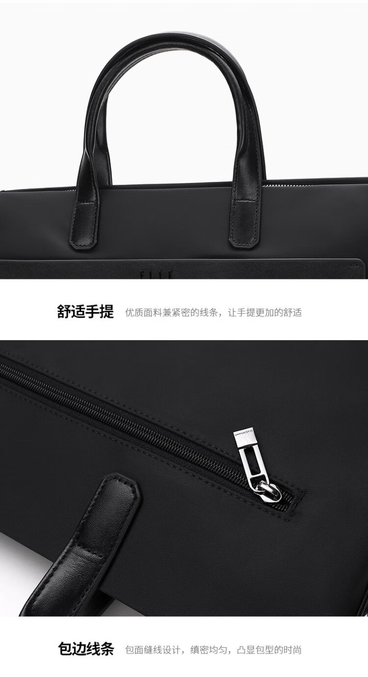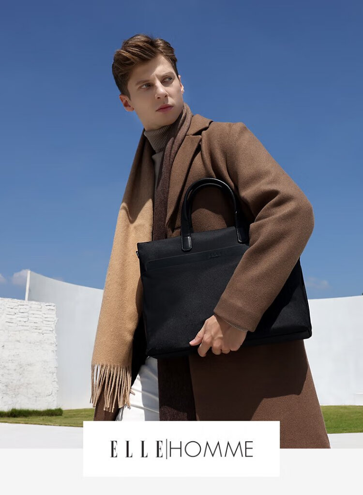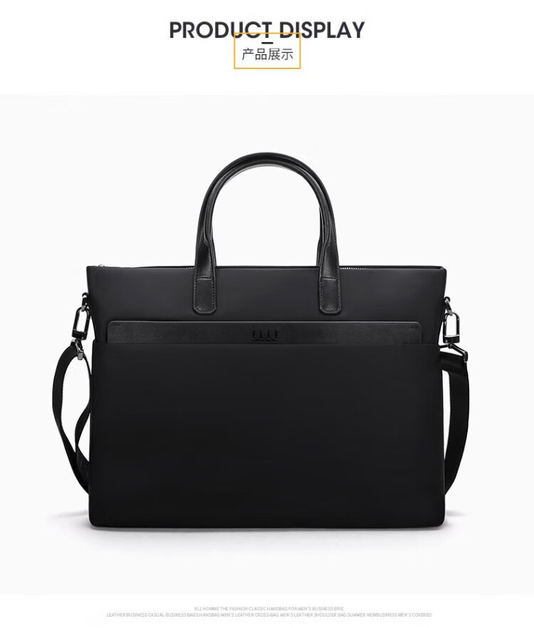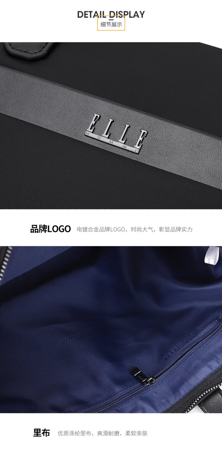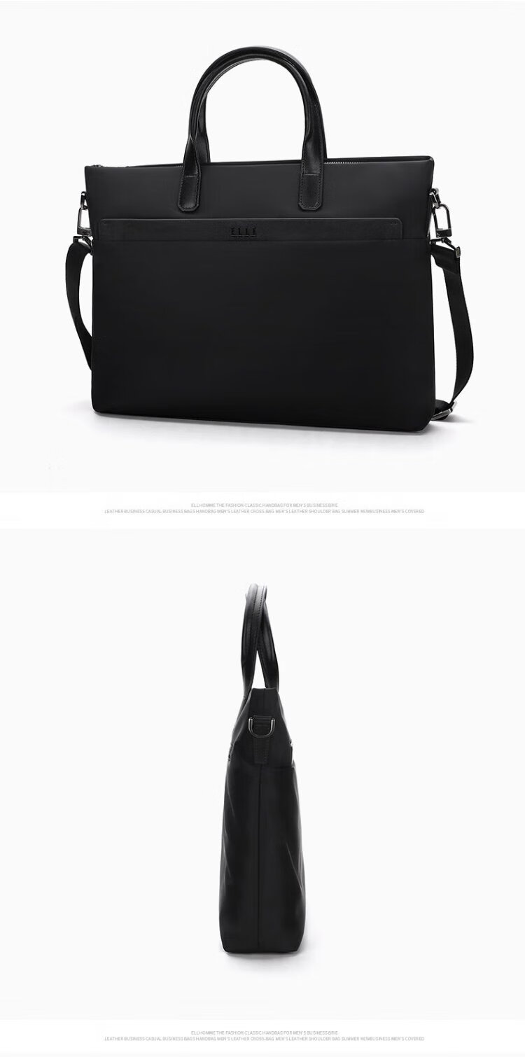 ELLE HOMME Business Men's Briefcase Fashionable Canvas Crossbody Handbag Casual 14-inch Computer Bag 02210 Black