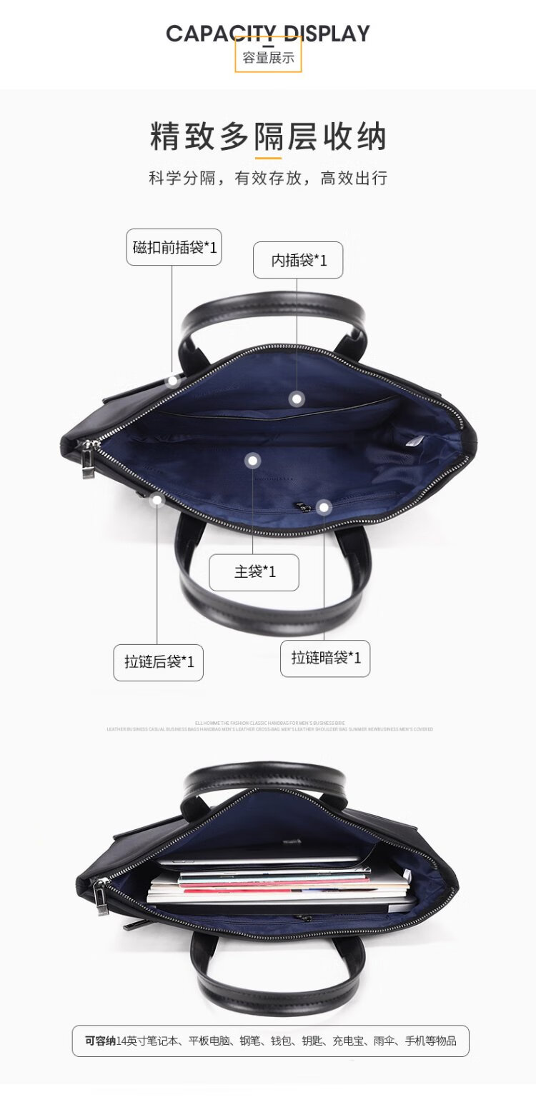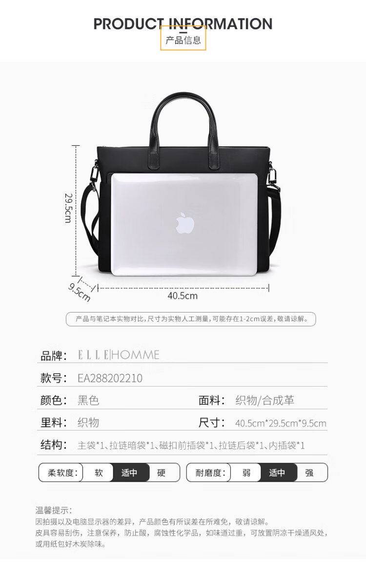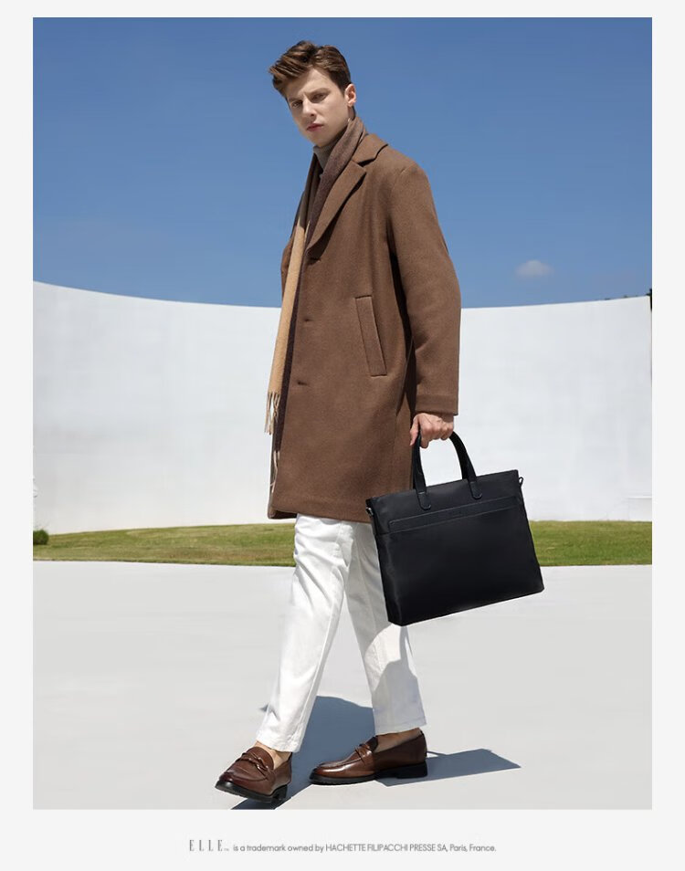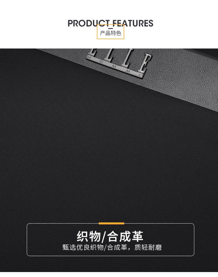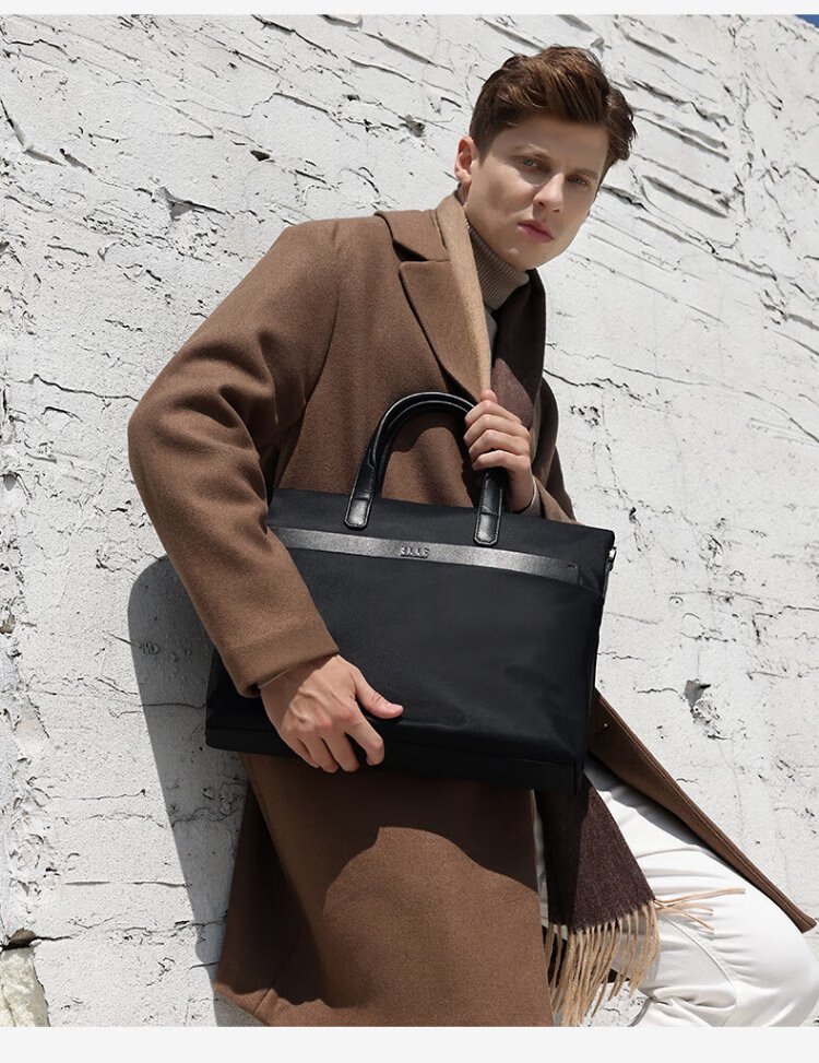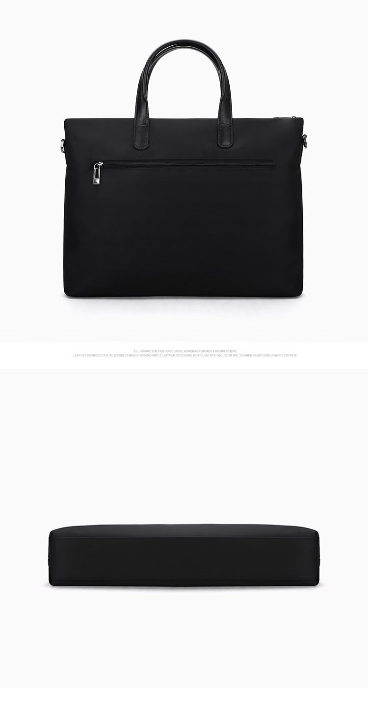 ELLE HOMME Business Men's Briefcase Fashionable Canvas Crossbody Handbag Casual 14-inch Computer Bag 02210 Black