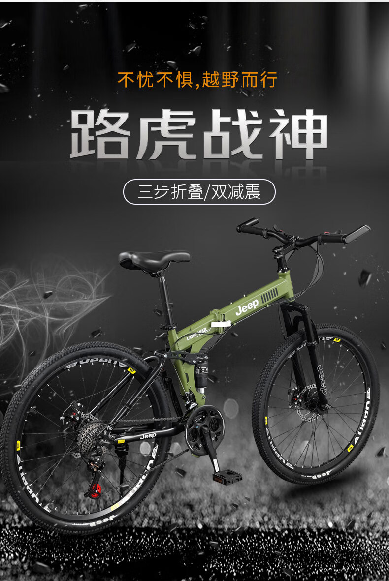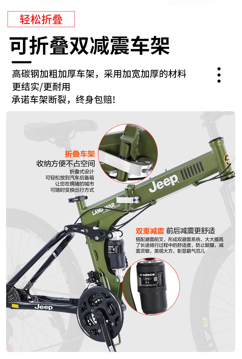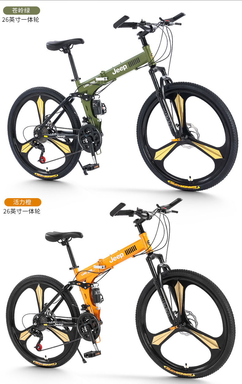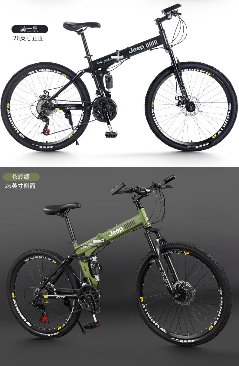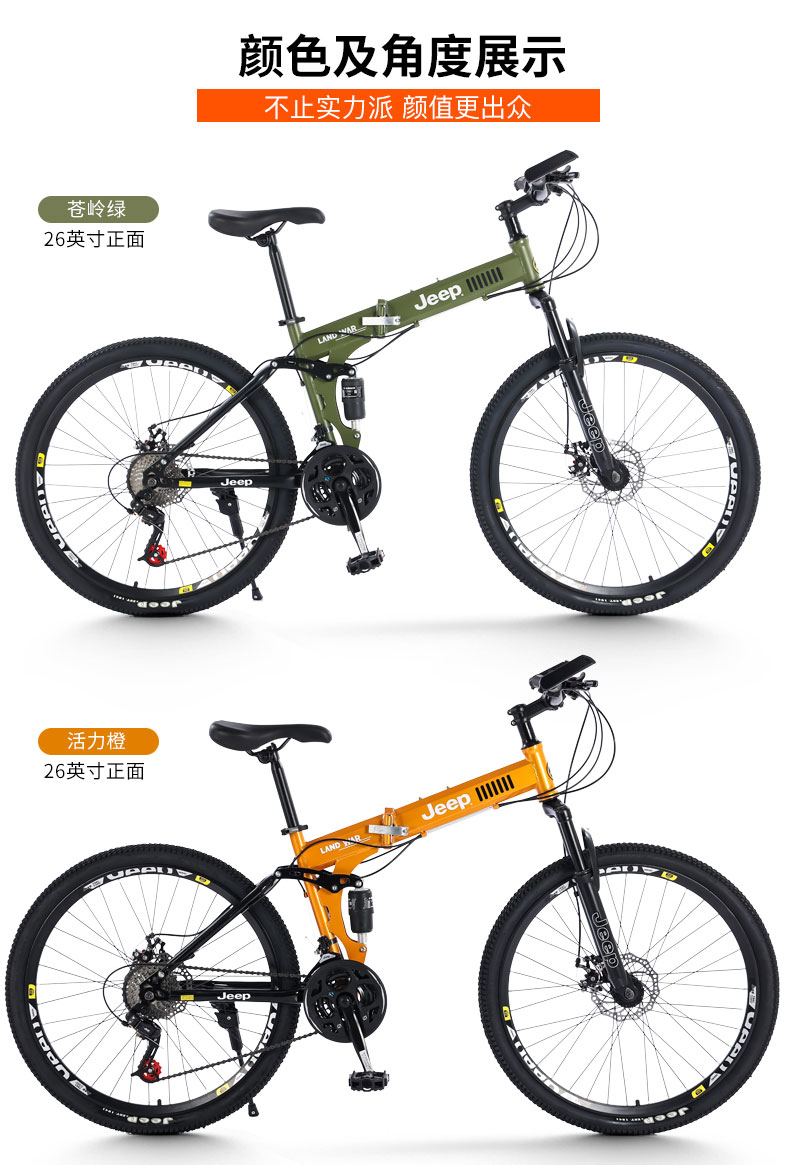 Jeep folding mountain male and female student 26-inch 24-speed dual shock-absorbing road bicycle Ares-Cangling Green