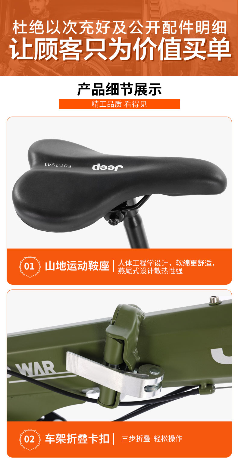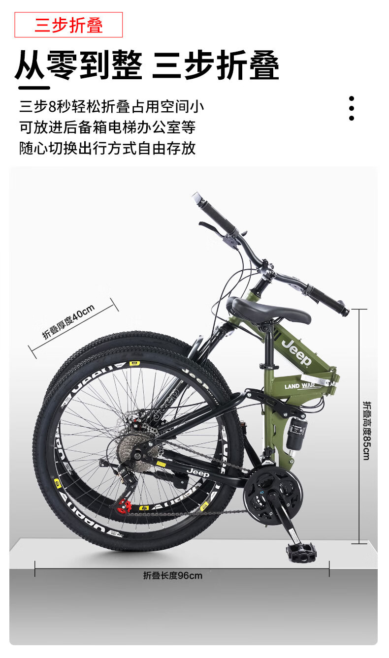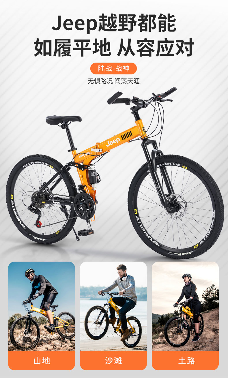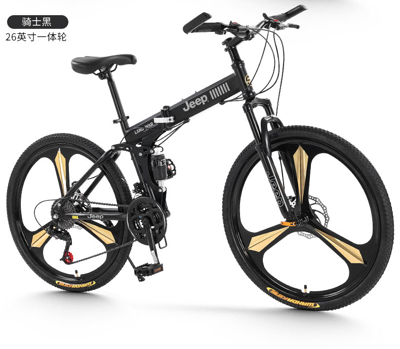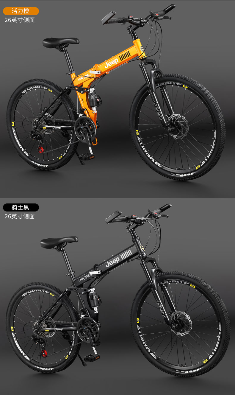 Jeep folding mountain male and female student 26-inch 24-speed dual shock-absorbing road bicycle Ares-Cangling Green