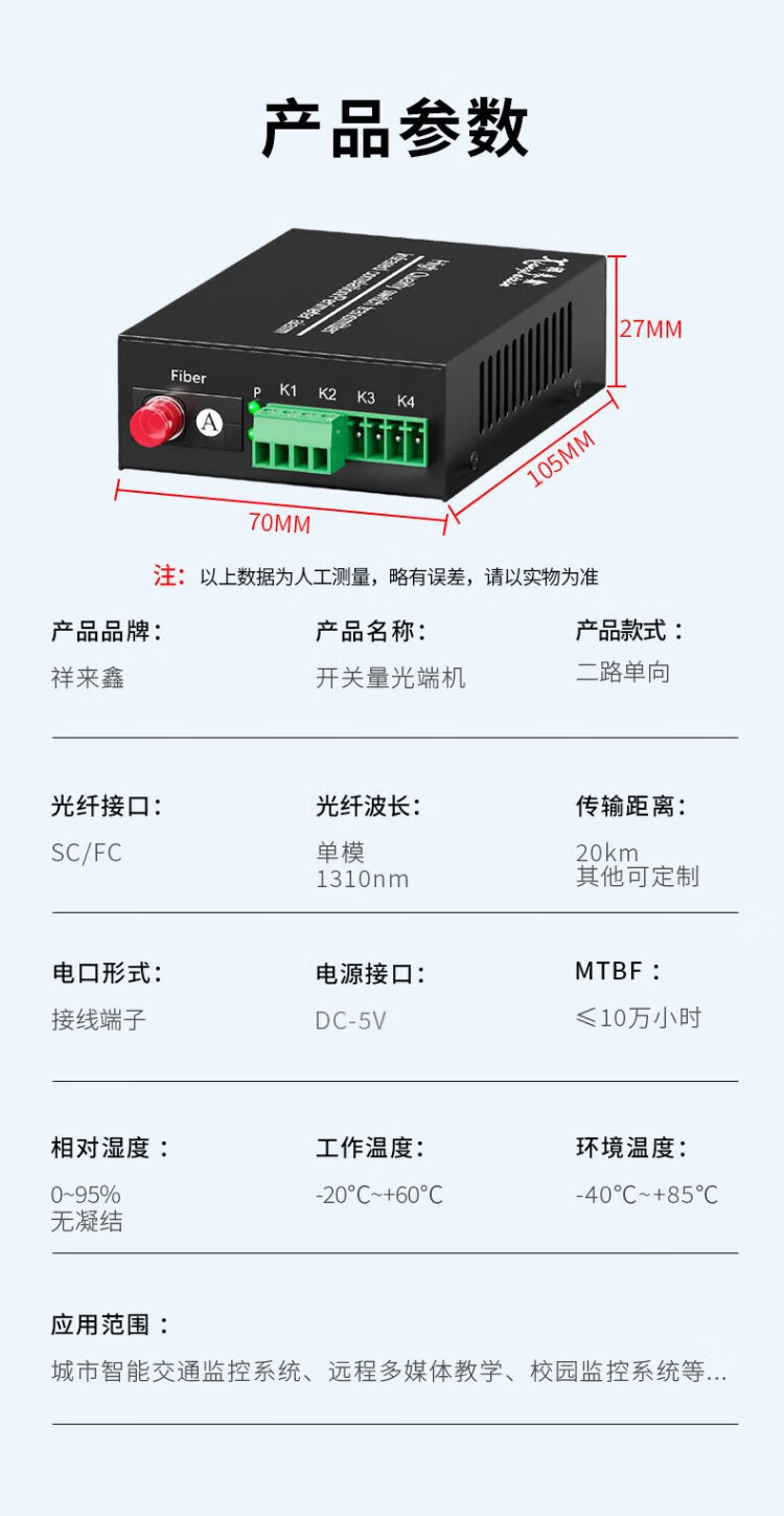 Xianglaixin switching optical transceiver 2-way one-way infrared/smoke sensor/peripheral/signal switch alarm transceiver FC pair XLX-GB5K2D